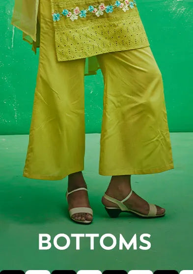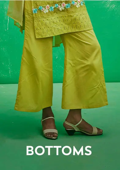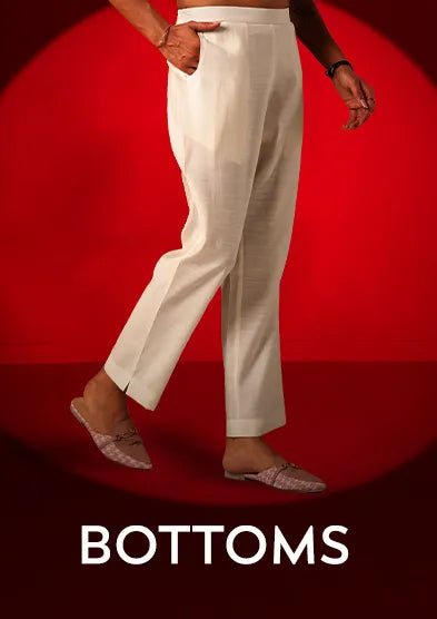 Have you found the perfect kurta but aren't sure what to wear with it? We've got you covered! Our line of women's clothing includes specially designed bottom wear for women. Pick from a wide range of salwar pants, high waist trousers, churidars, palazzos, and sharara pants in rich colours, luxurious elements, and opulent fabrics.