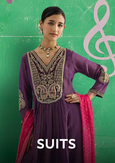 Suits are well-coordinated ethnic sets, which usually consist of a kurta, a bottom (palazzos, salwars, pants, or skirts), and a dupatta. Suits for women come in a variety of shapes, including the straight ones, Ankarkalis, A-line fits, Angarkhas, and many more. Additionally, these suits are crafted in the finest fabrics like cotton, silk, georgette, velvet, and even wool.