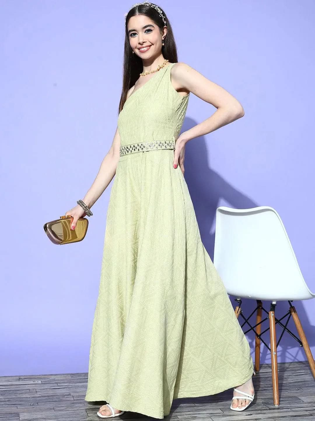 Styling Tip: Pair this Hollywood dress style with stylish jewellery, a casual tote bag, and Kolhapuri flats to complete the look.