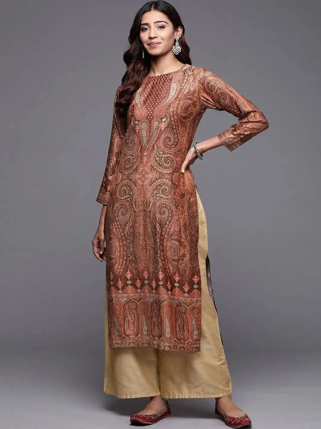 Embroidered Elegance: Brown Embroidered Silk Suit Set
