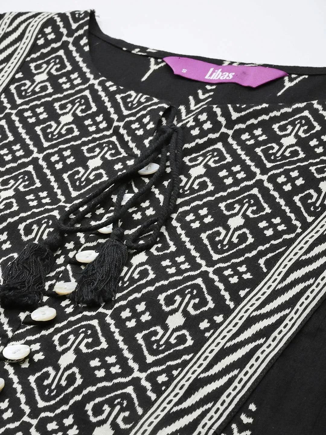 Buy Black Printed Cotton Kurta Set - 33251O-XS | Libas Ethnic Wear Online