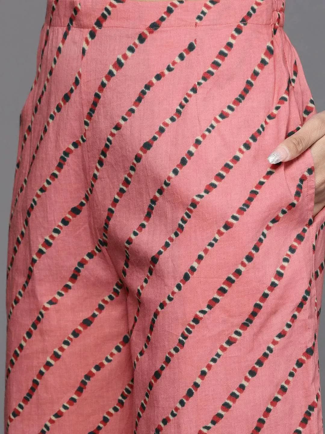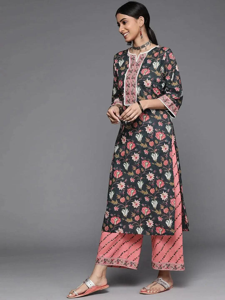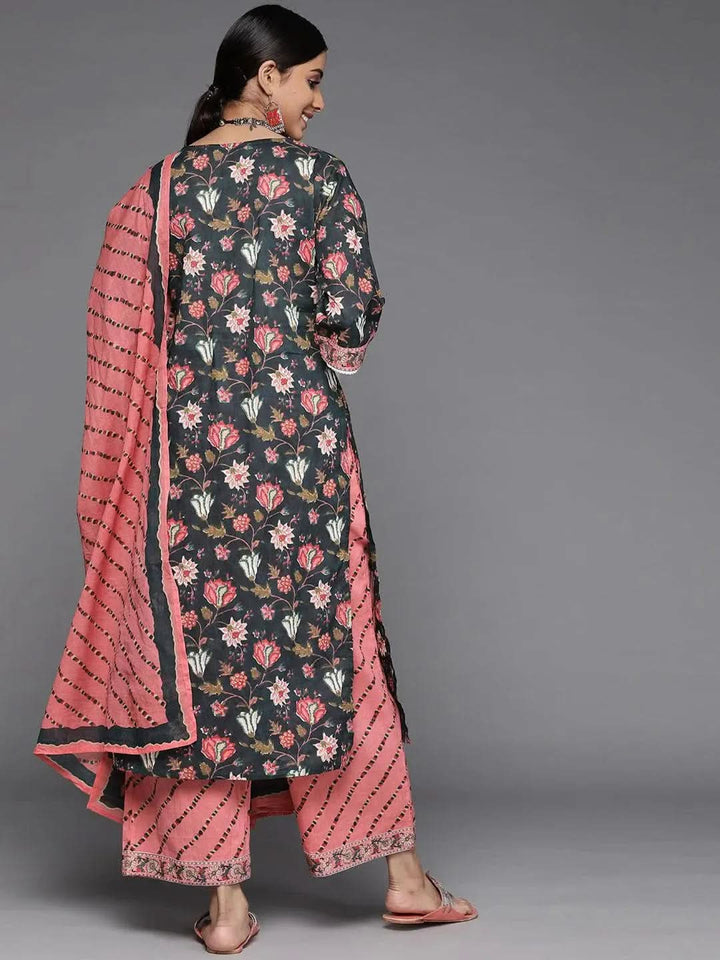 Black Printed Cotton Straight Kurta With Palazzos & Dupatta