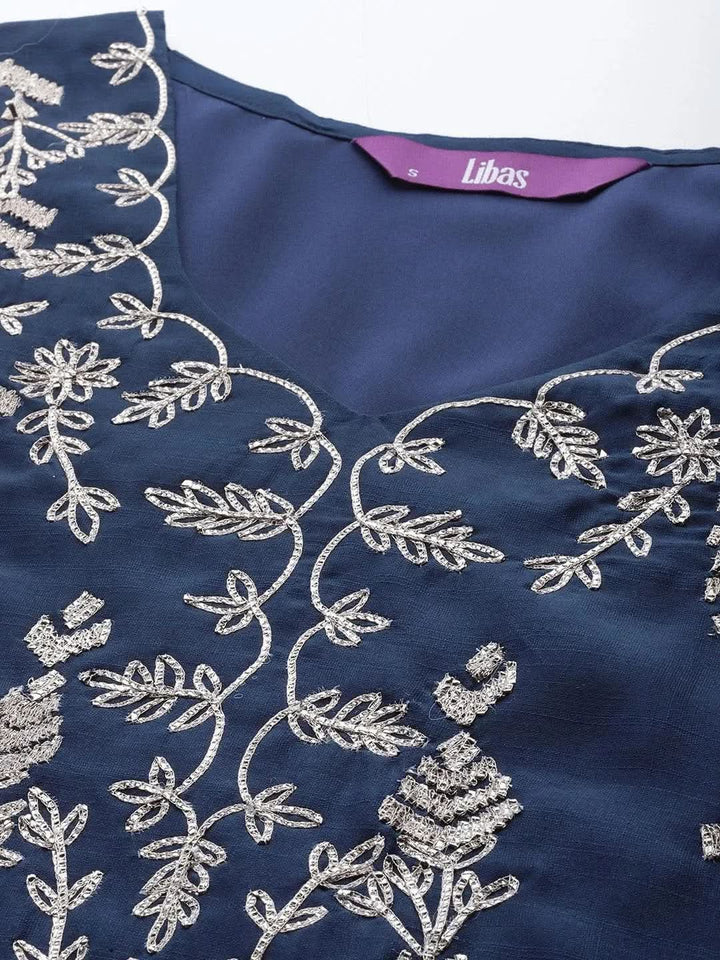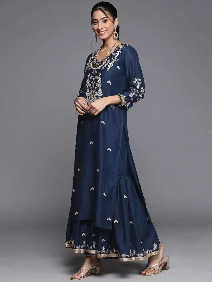 Buy Blue Embroidered Chanderi Silk Suit Set - 20149O-XXL | Libas Ethnic Wear Online