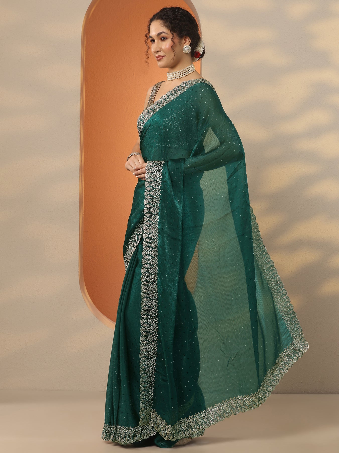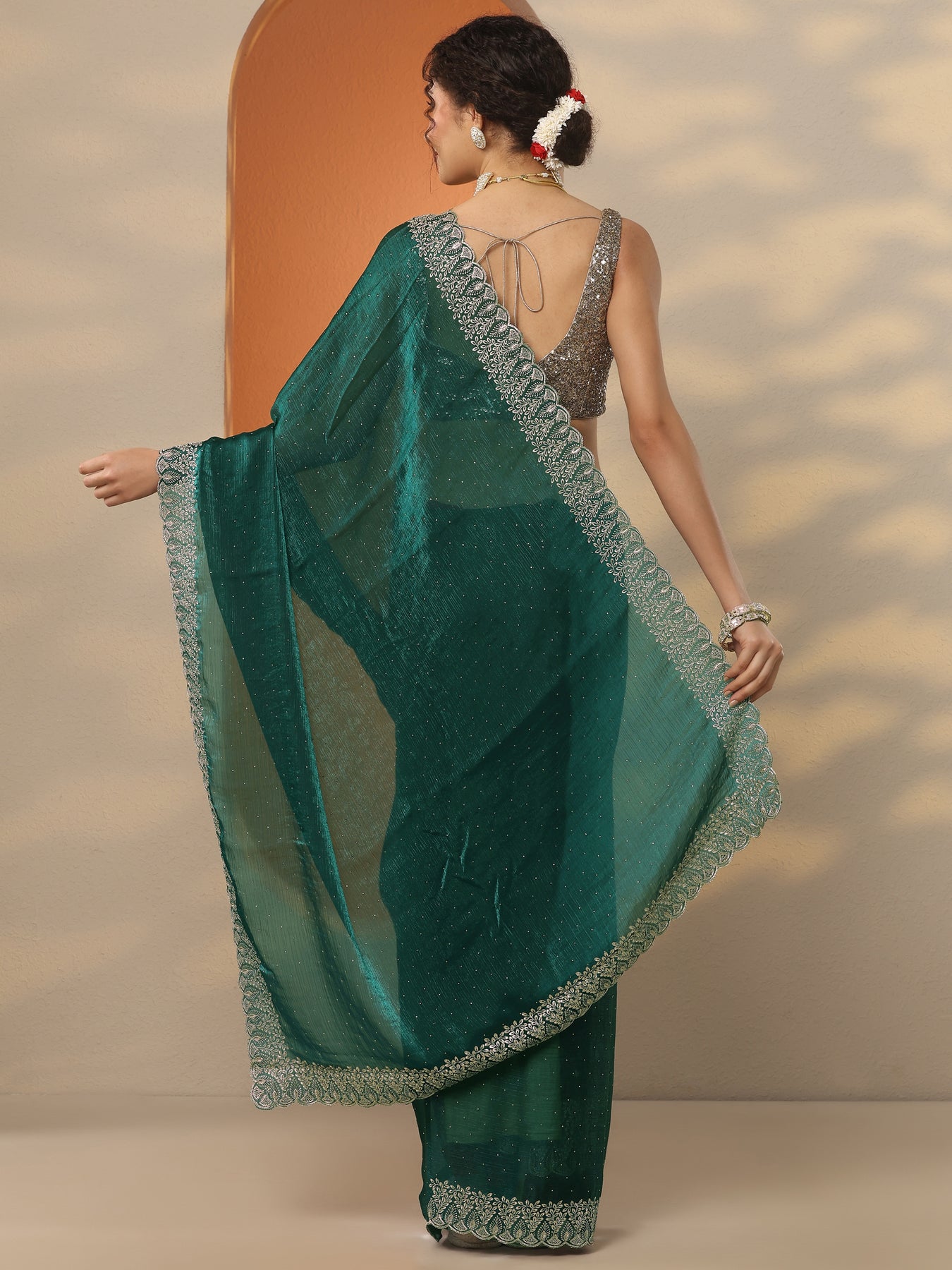 Green Embellished Organza Saree With Unstitched Blouse Piece