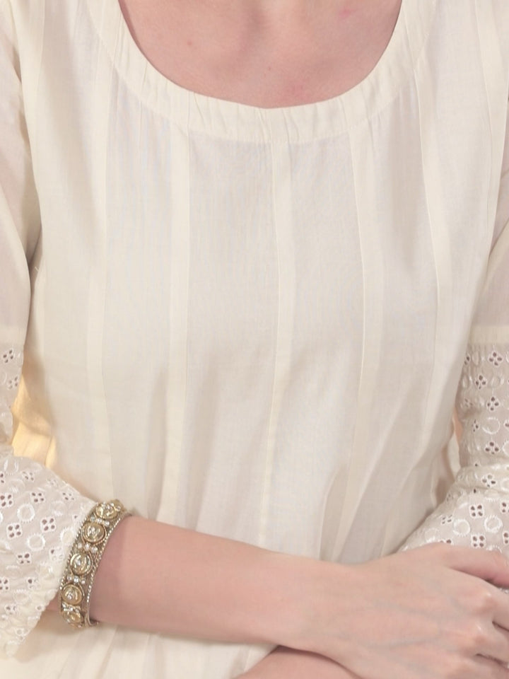 Off-White Solid Cotton Anarkali Kurta With Palazzos & Dupatta