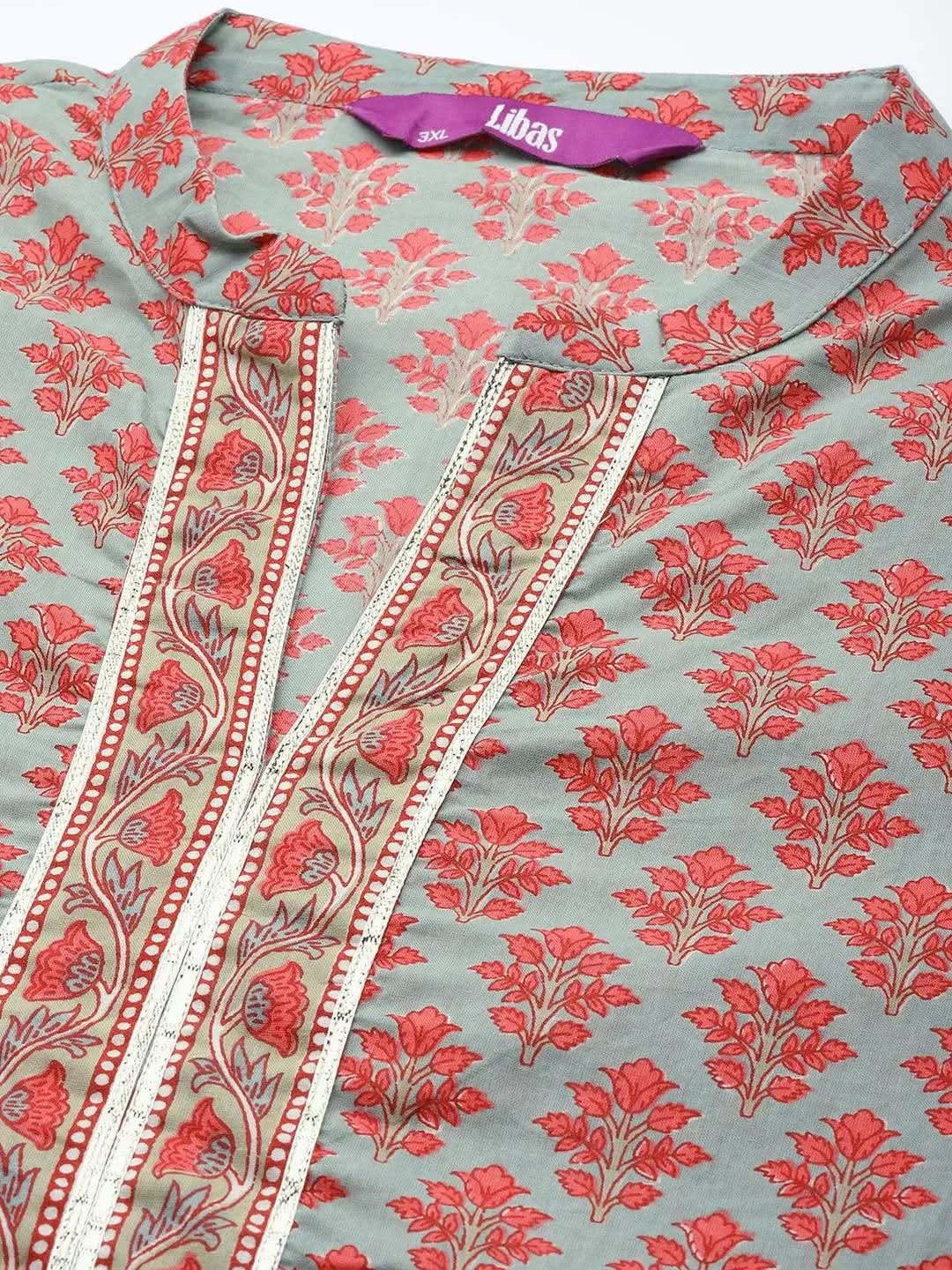 Buy Plus Size Green Printed Cotton Suit Set - 15090-6XL | Libas Ethnic Wear Online