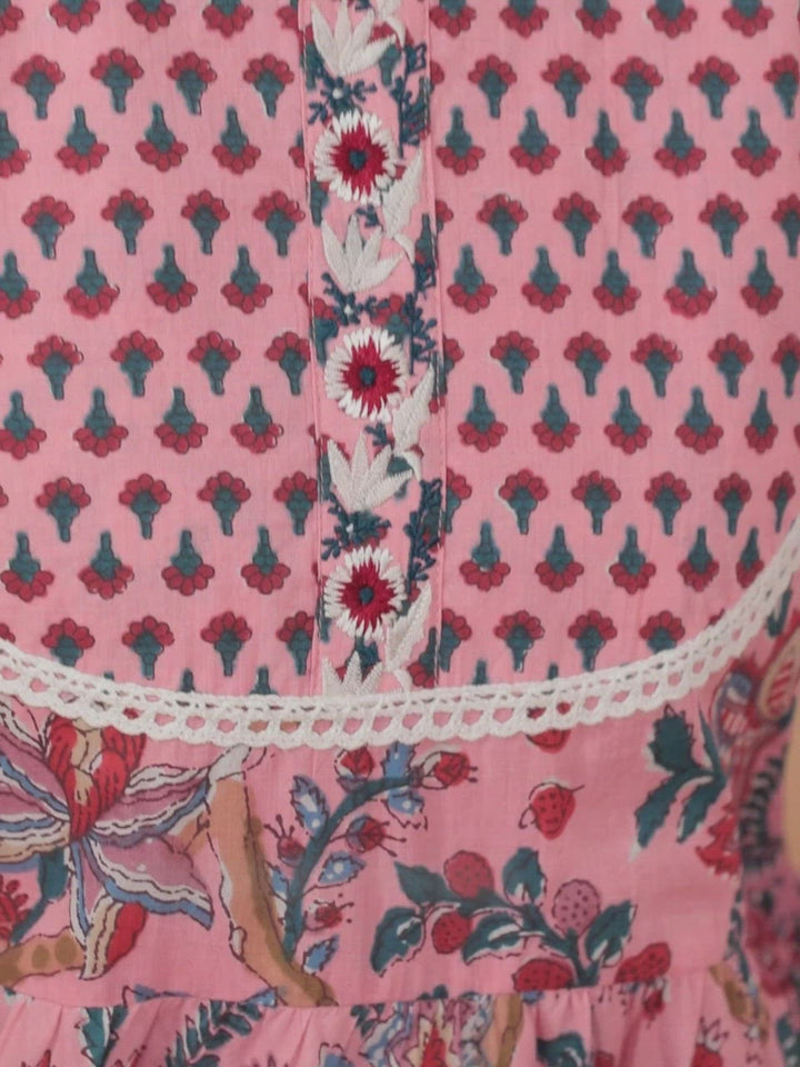 Pink Printed Cotton Anarkali Kurta With Dupatta