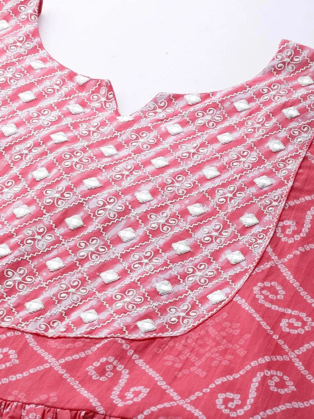 Pink Printed Cotton Anarkali Kurta With Dupatta