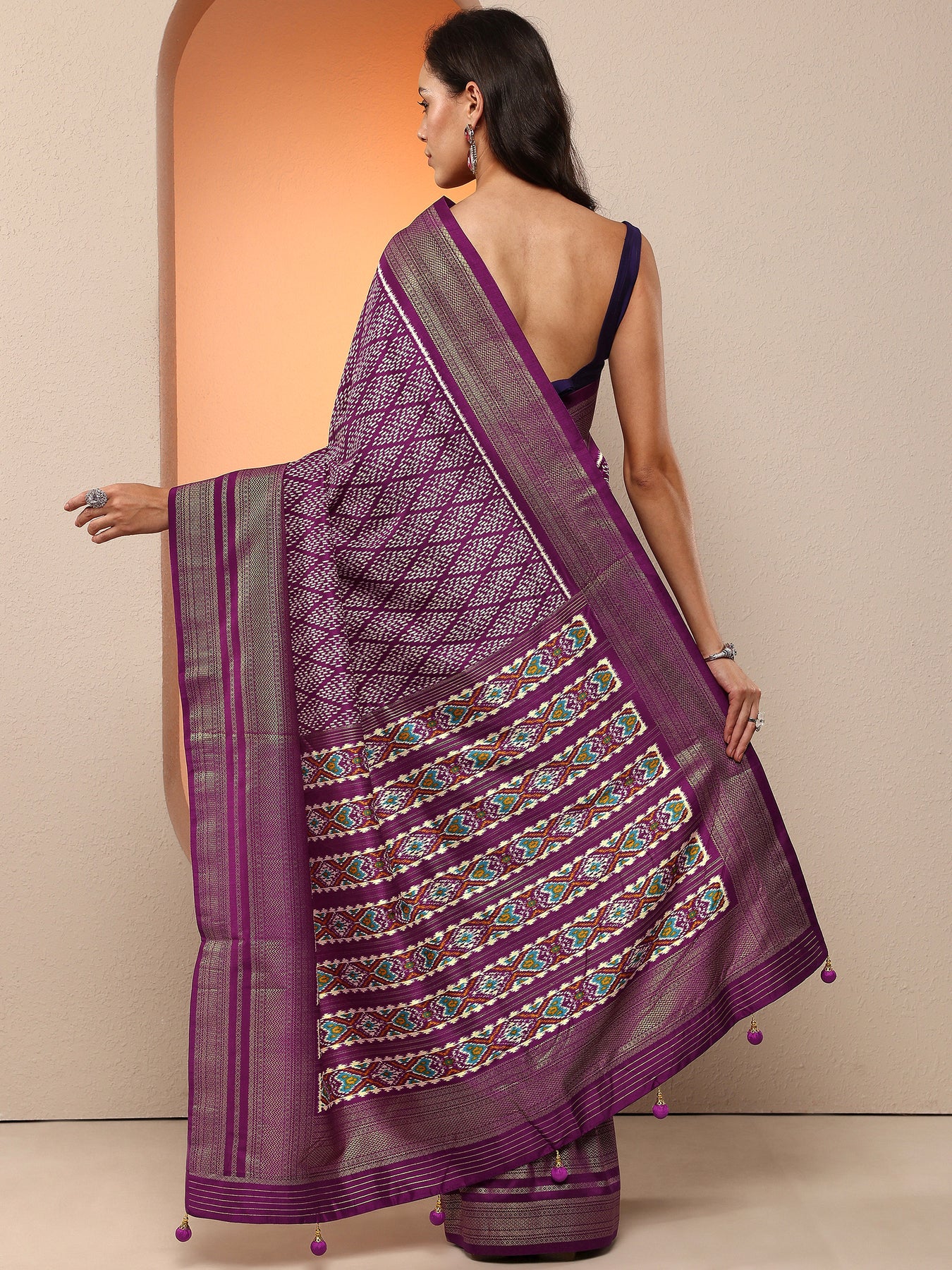 Purple Printed Silk Blend Sarees With Unstitched Blouse Piece