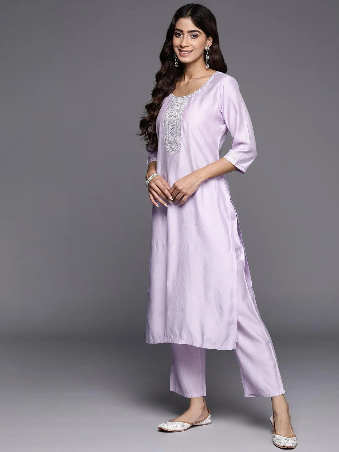 Lavender Yoke Design Silk Blend Straight Suit With Dupatta