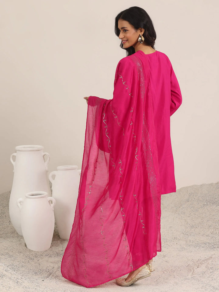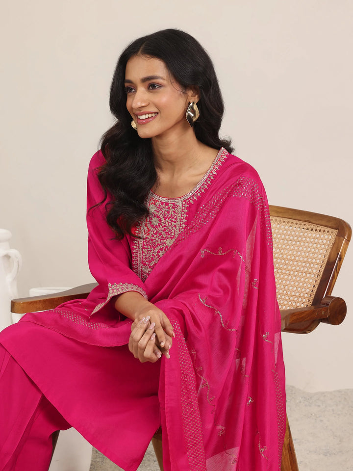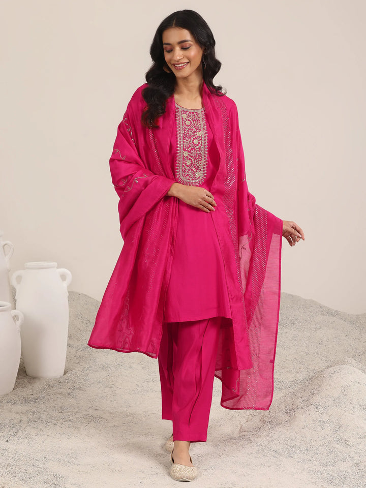Pink Yoke Design Silk Blend Straight Suit With Dupatta