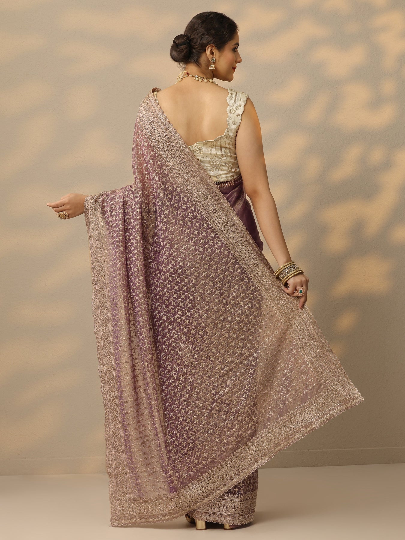 Mauve Embroidered Banarasi Nylon Saree With Unstitched Blouse Piece