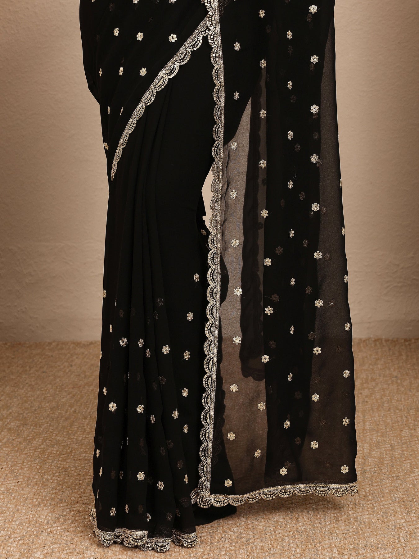 Black Embroidered Georgette Saree With Unstitched Blouse Piece