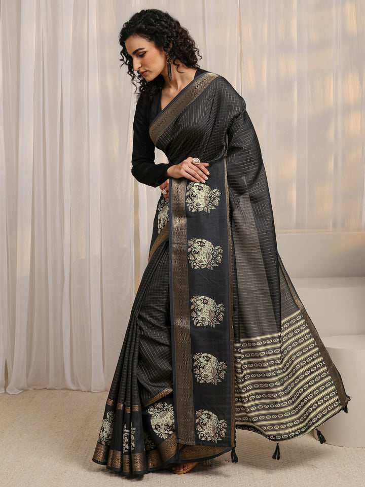 Black Ethnic Motif Woven Design Silk Blend Saree