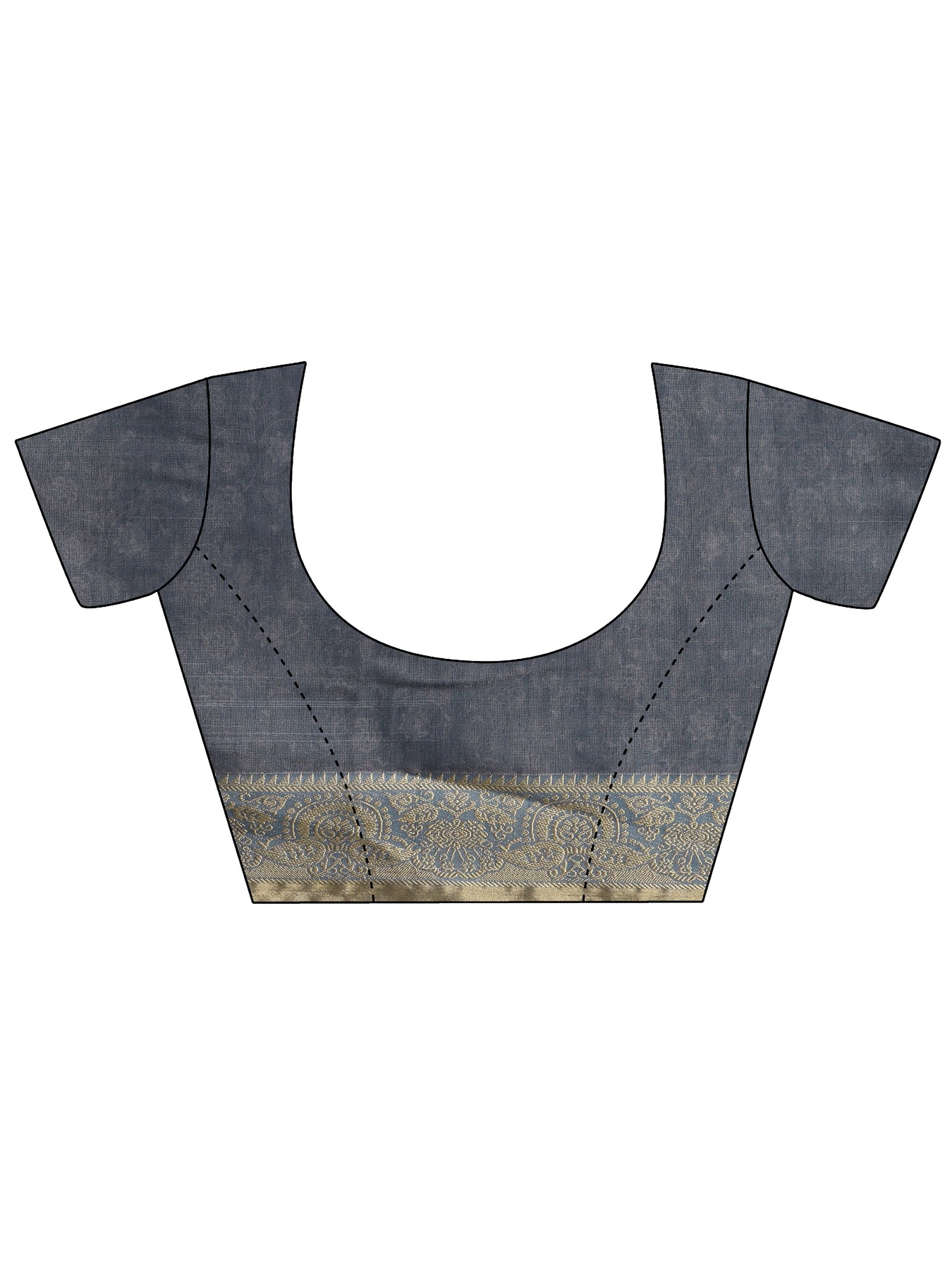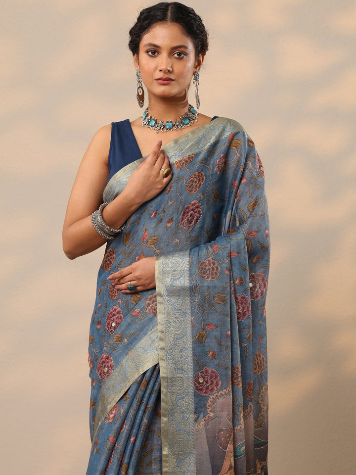 Blue Printed Jamdani cotton blend Saree With Unstitched Blouse Piece