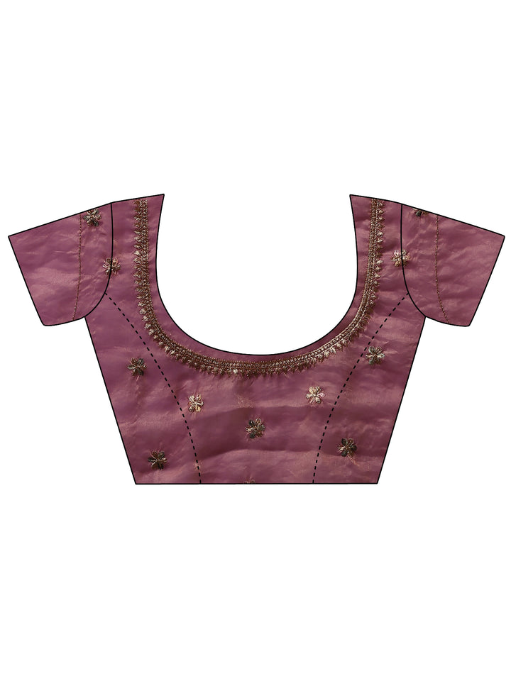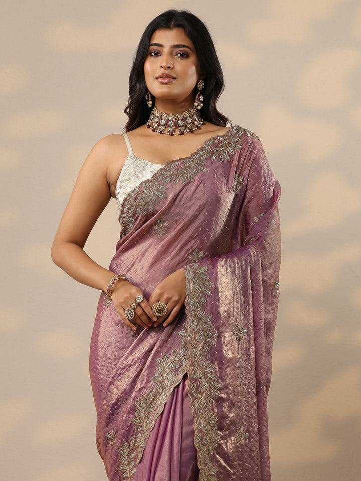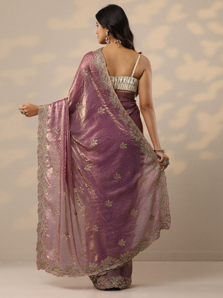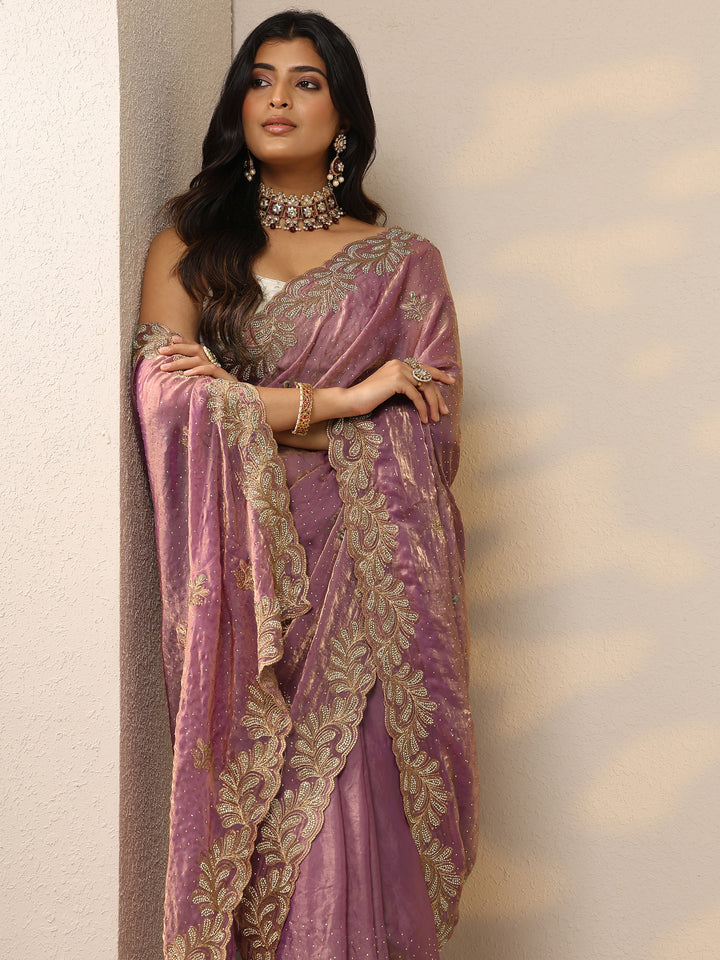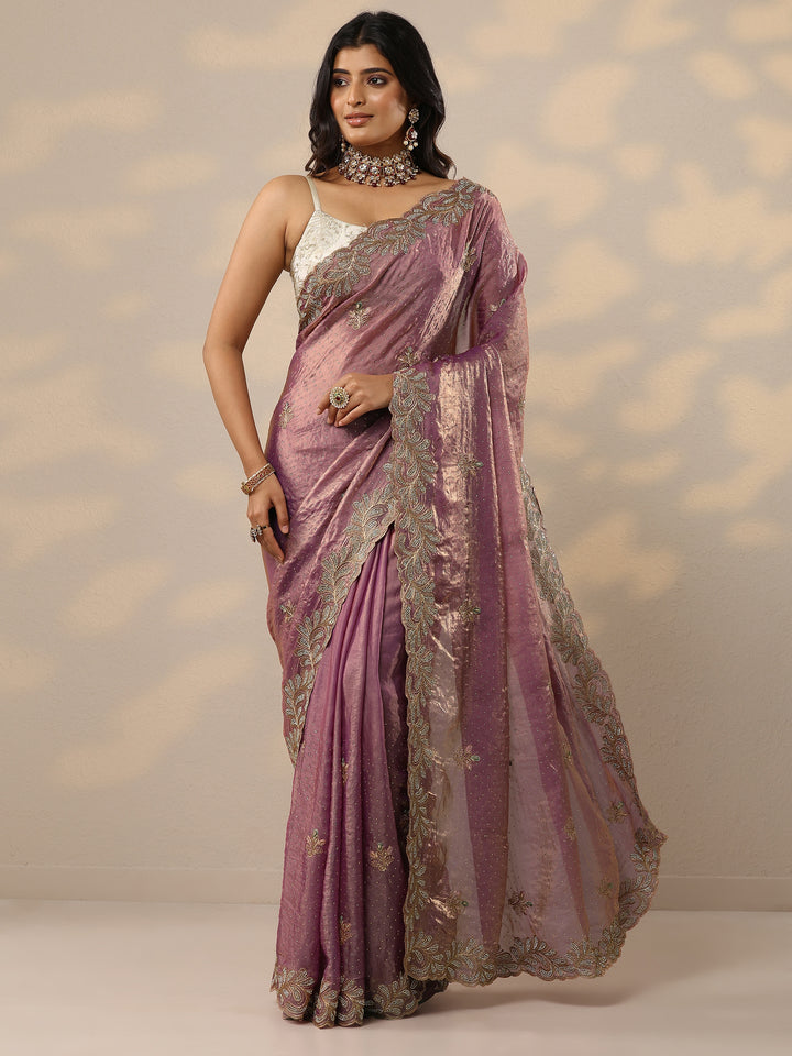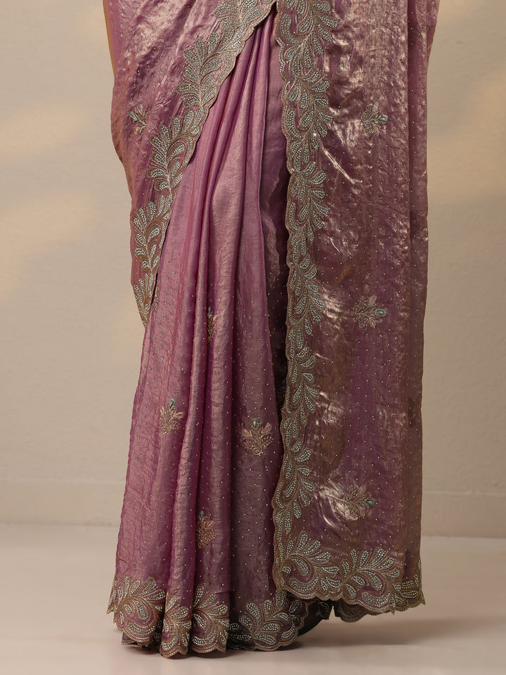 Lavender Embellished Organza Sarees With Unstitched Blouse Piece