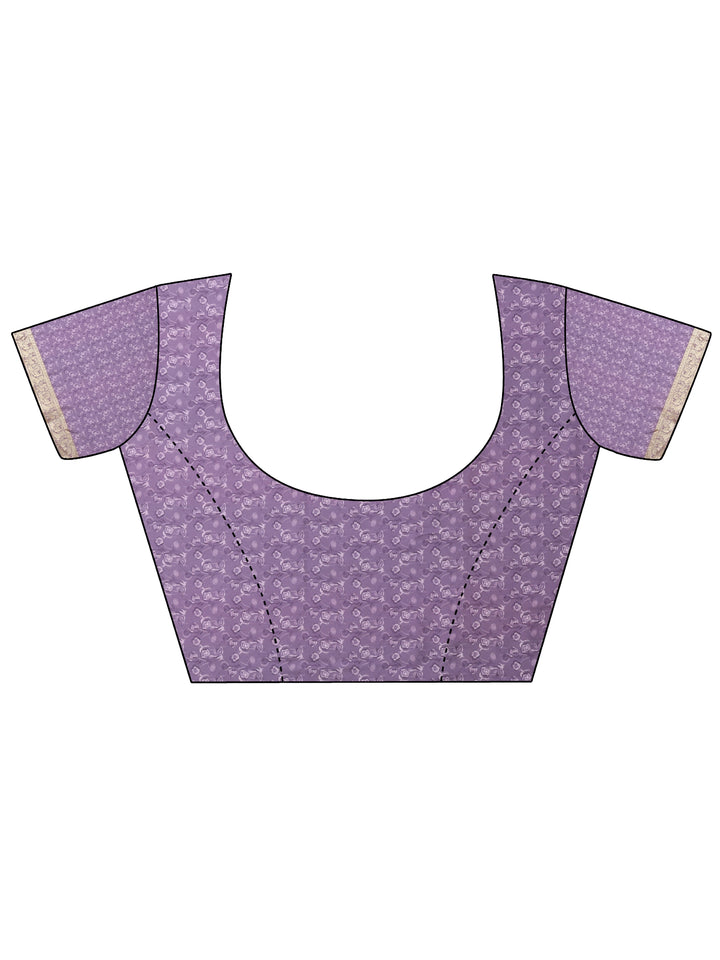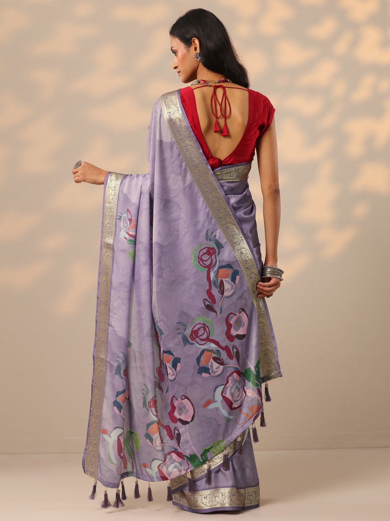 Lavender Printed Crepe Saree With Unstitched Blouse Piece