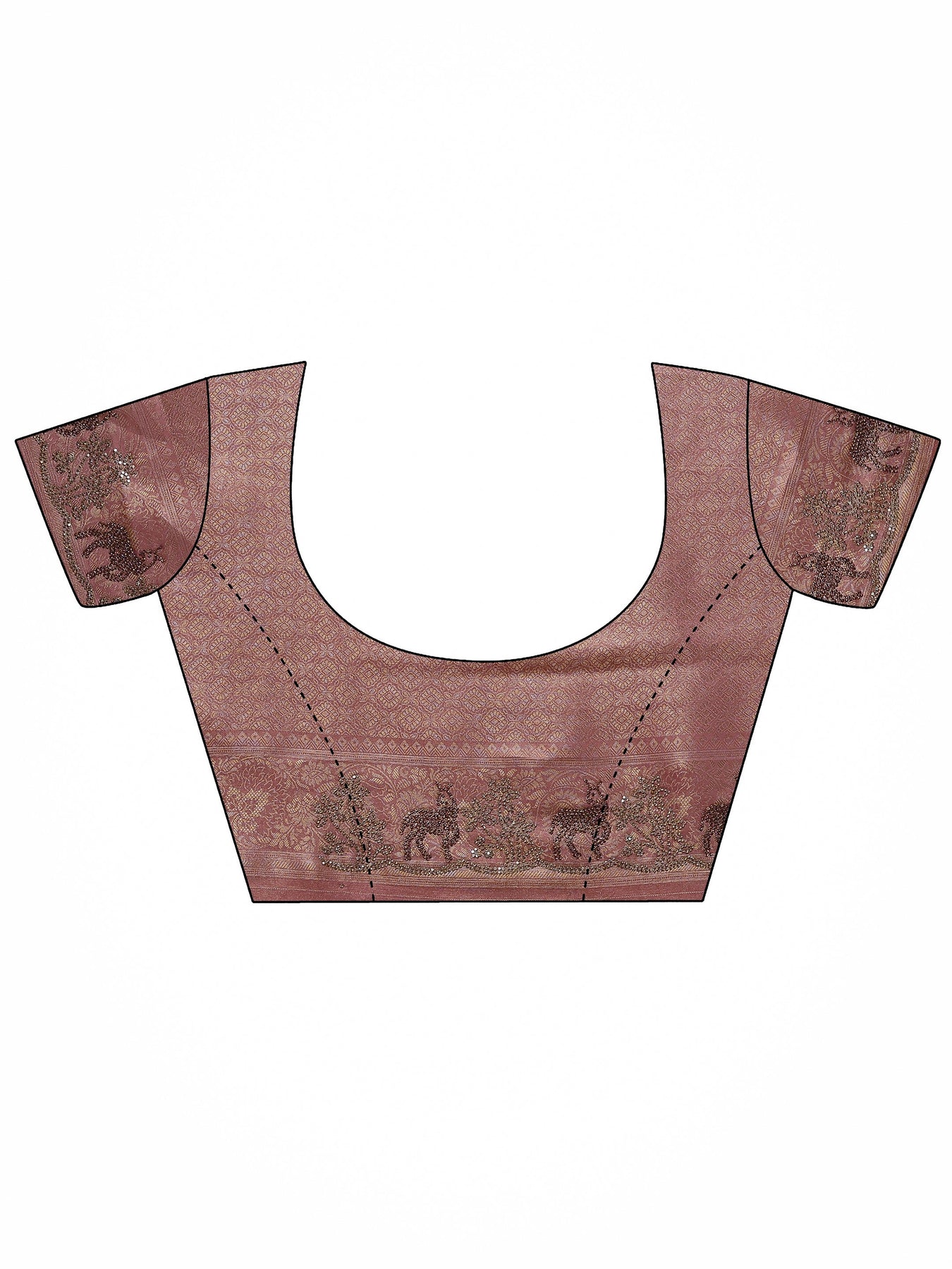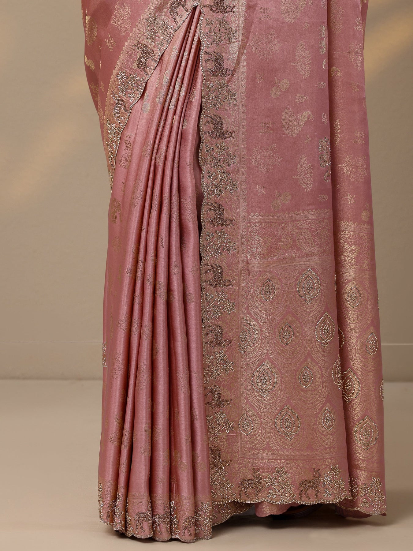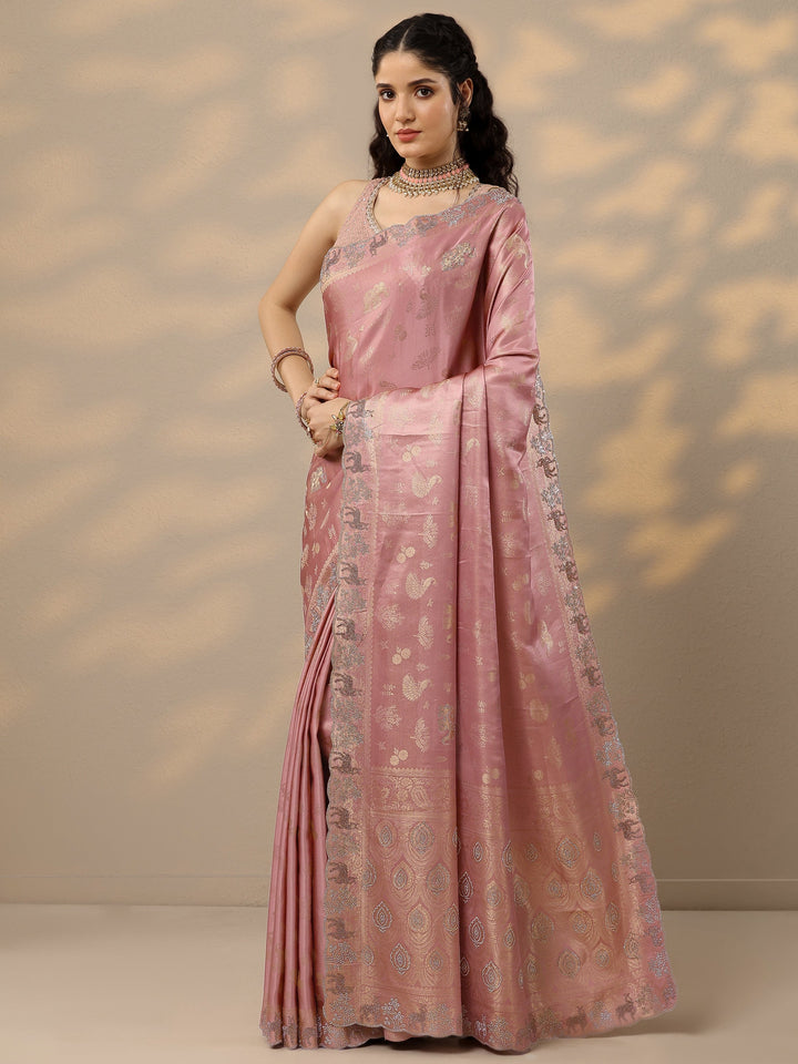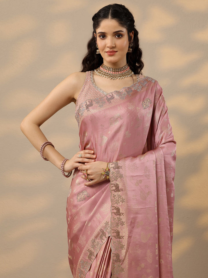 Pink Woven Design Banarasi Silk Blend Saree With Unstitched Blouse Pie