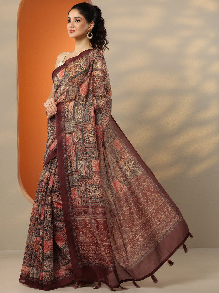 "image": "//www.libas.in/cdn/shop/files/92976P_7MainBrownPrintedSilkBlendSareeWithUnstitchedBlousePiece.jpg?v=1760356391",