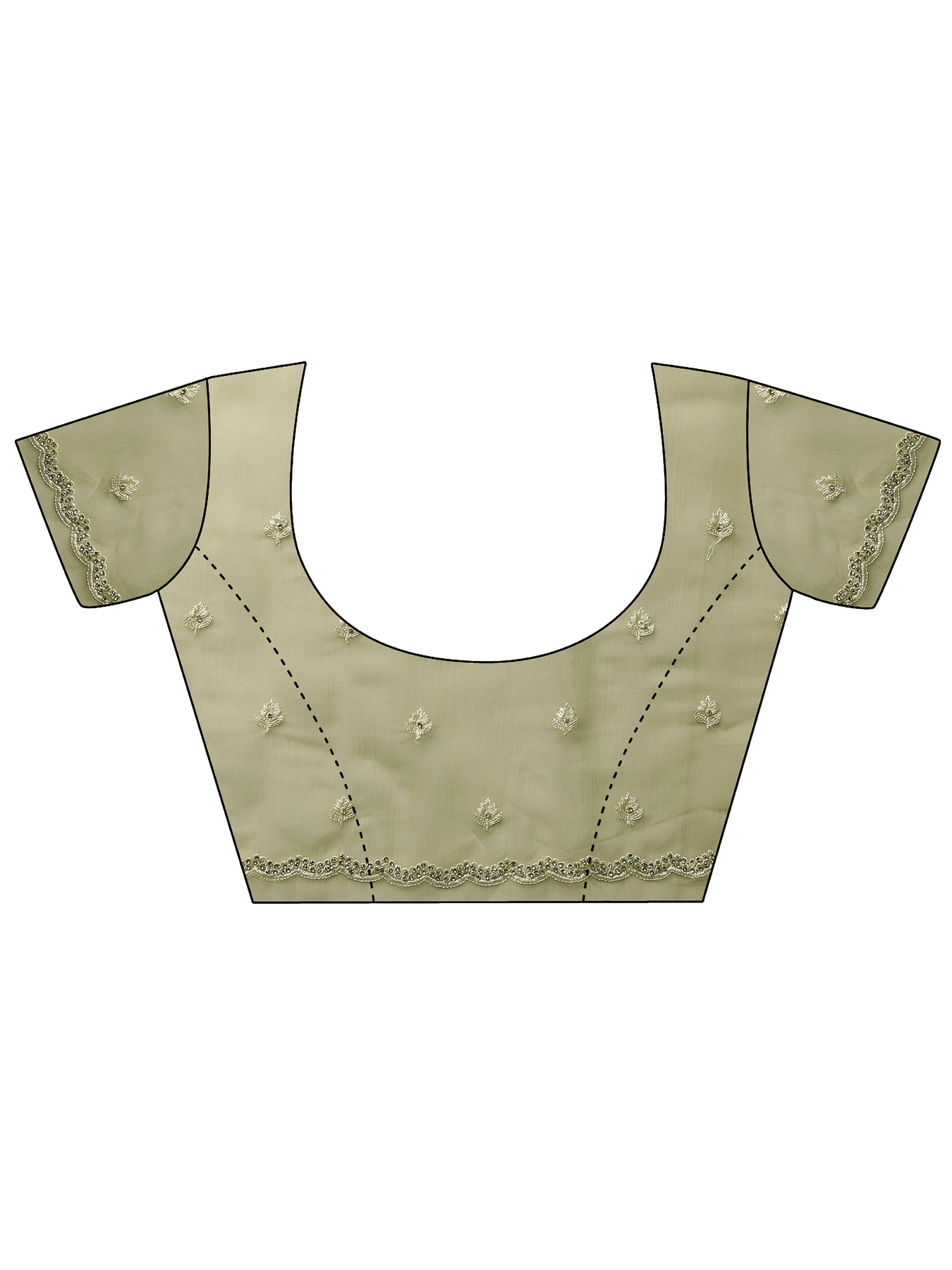 Green Embroidered Pure Chiffon Saree With Unstitched Blouse Piece