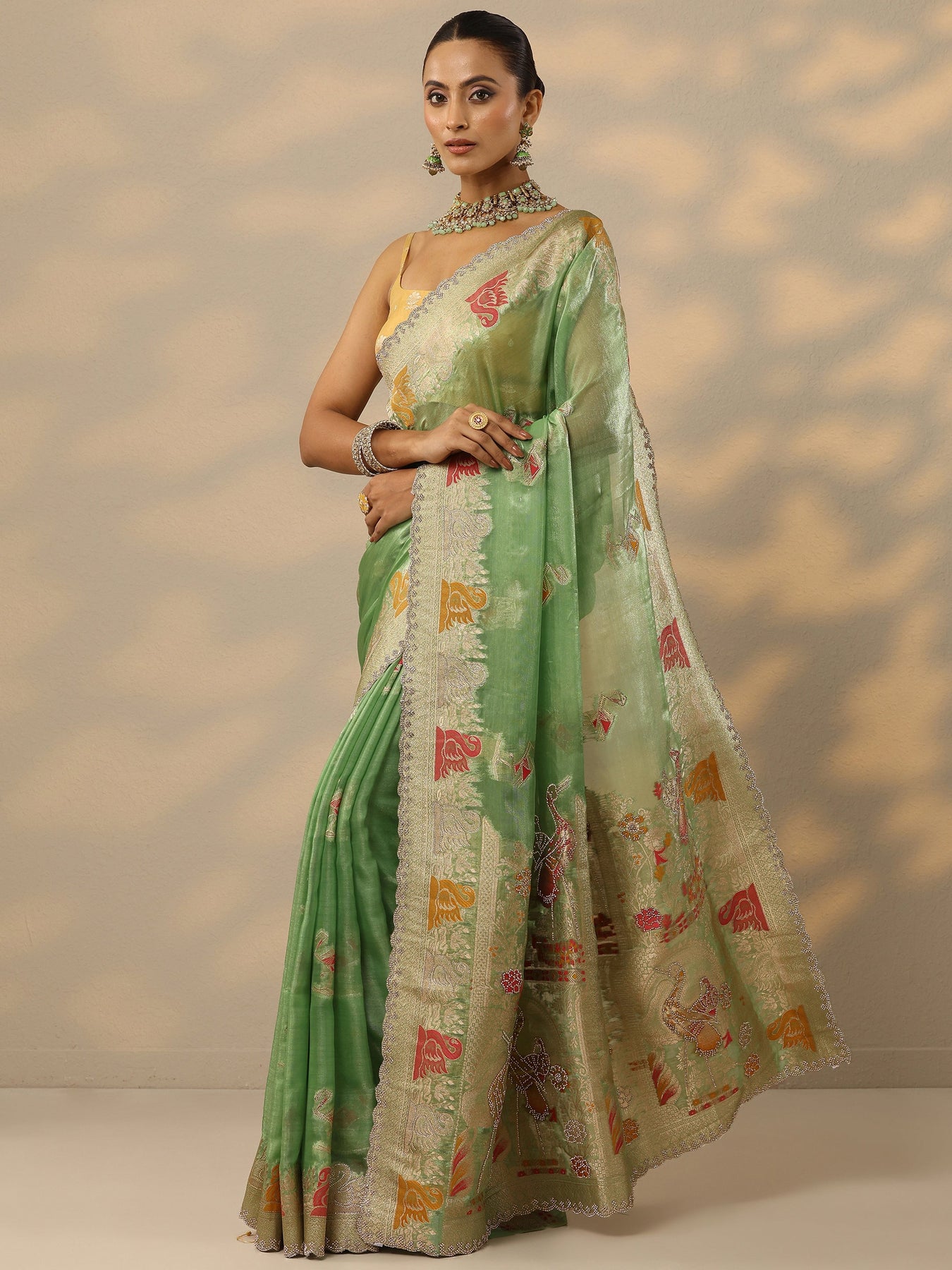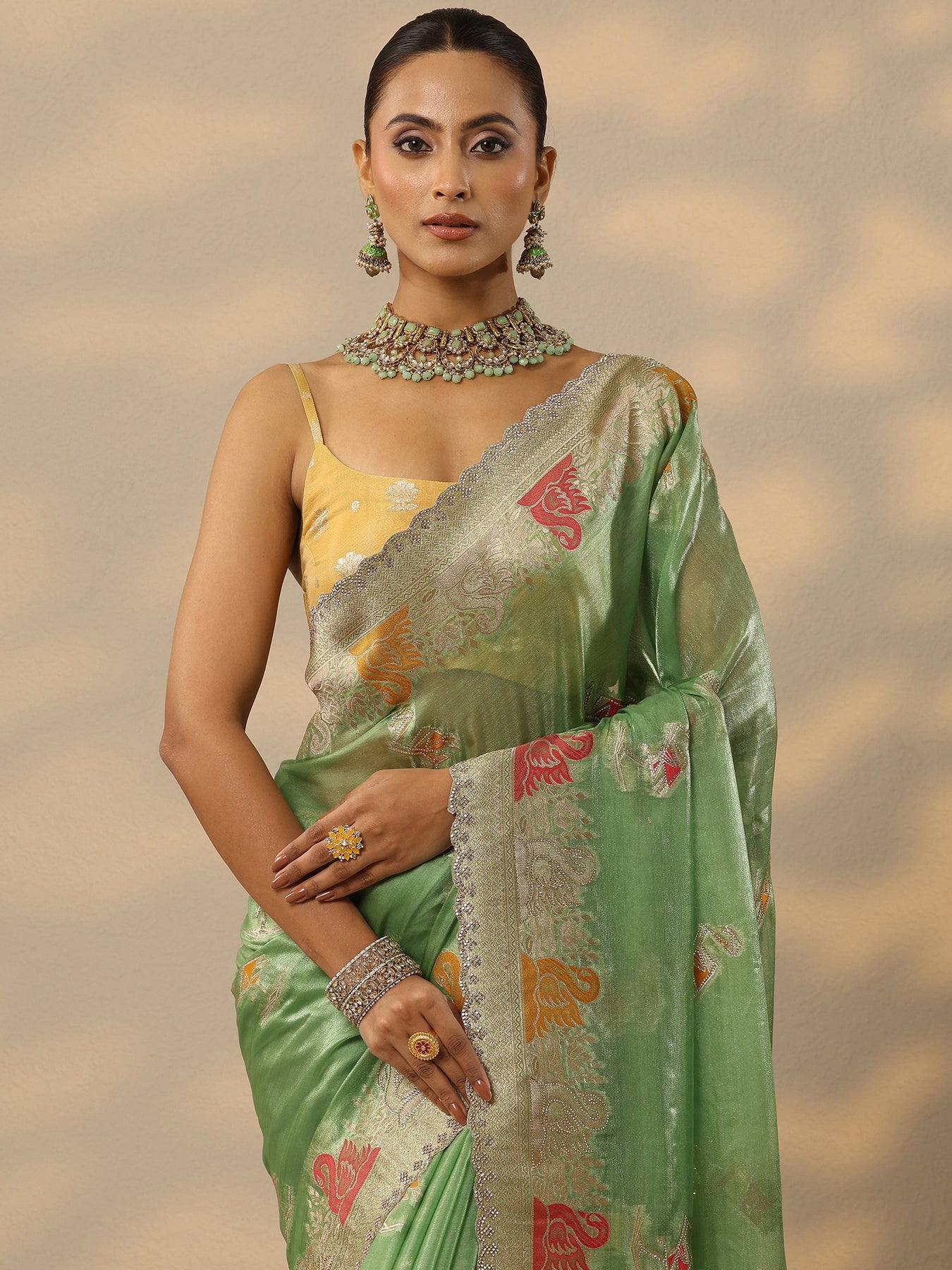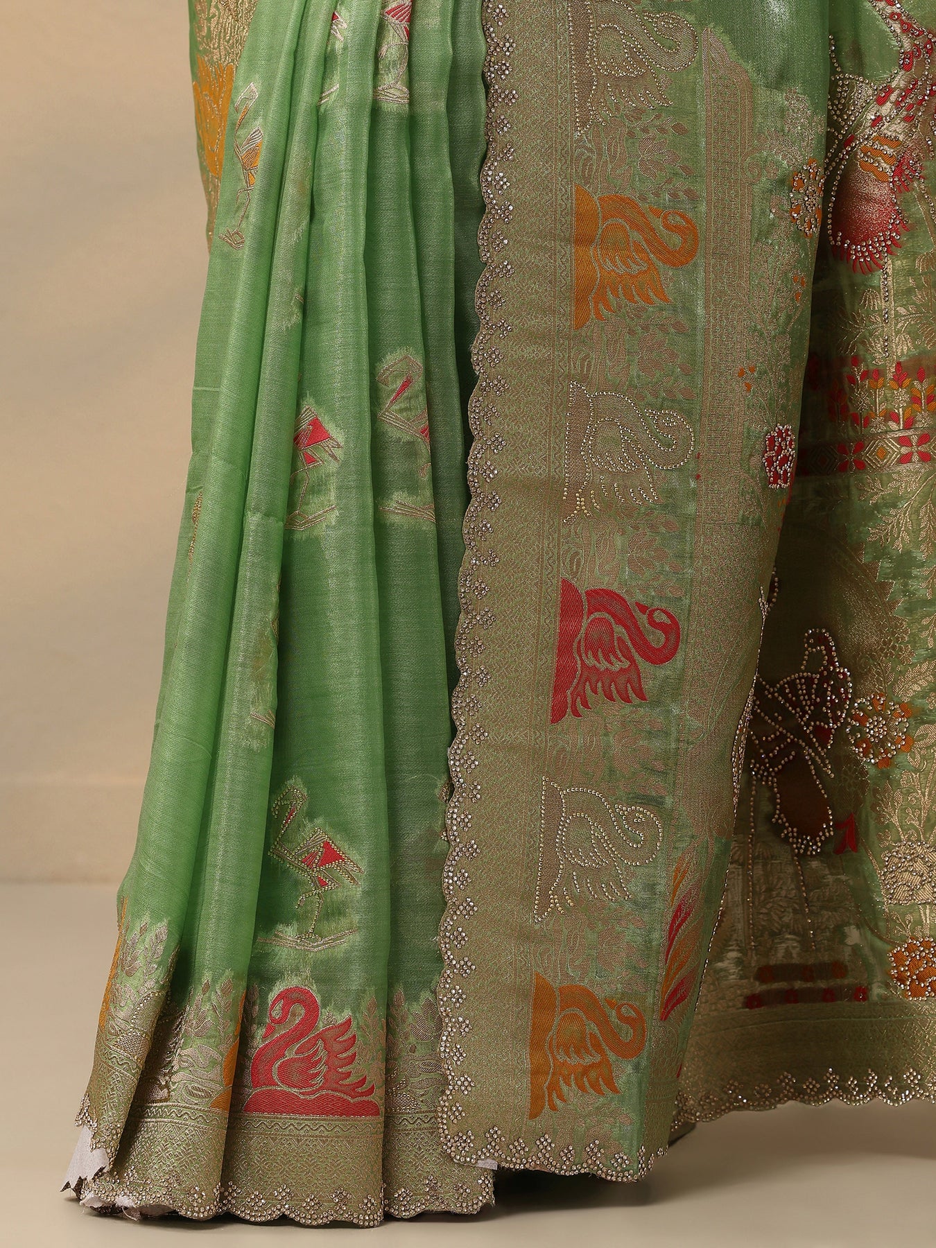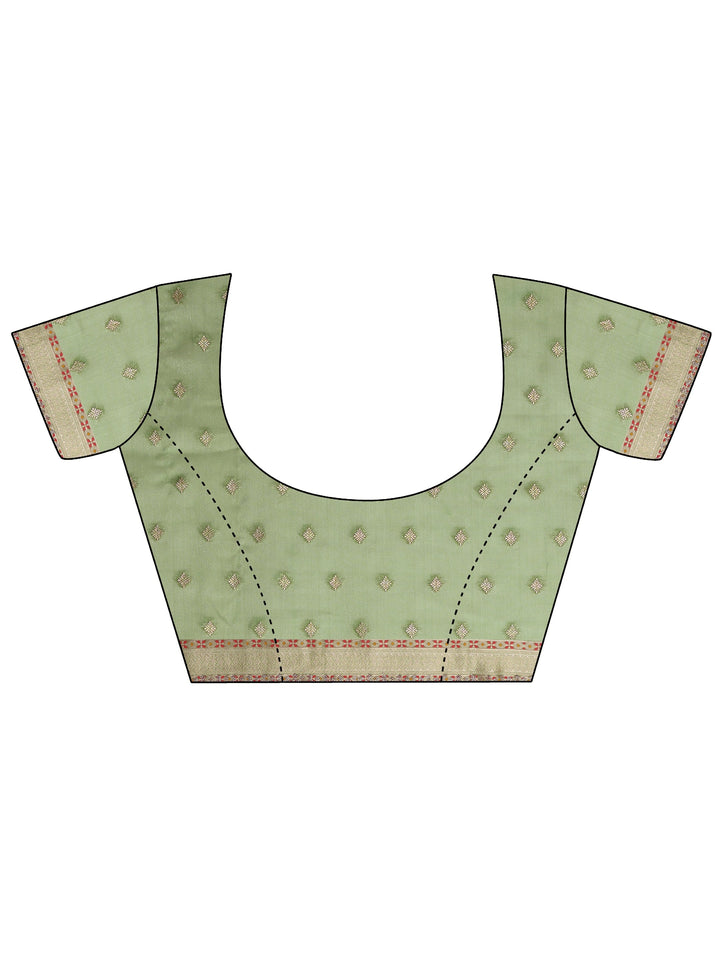 Green Embellished Banarasi Organza Saree With Unstitched Blouse Piece