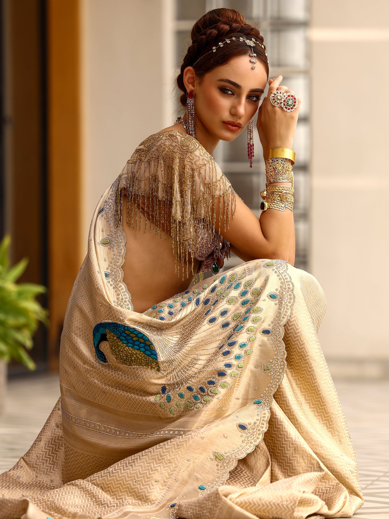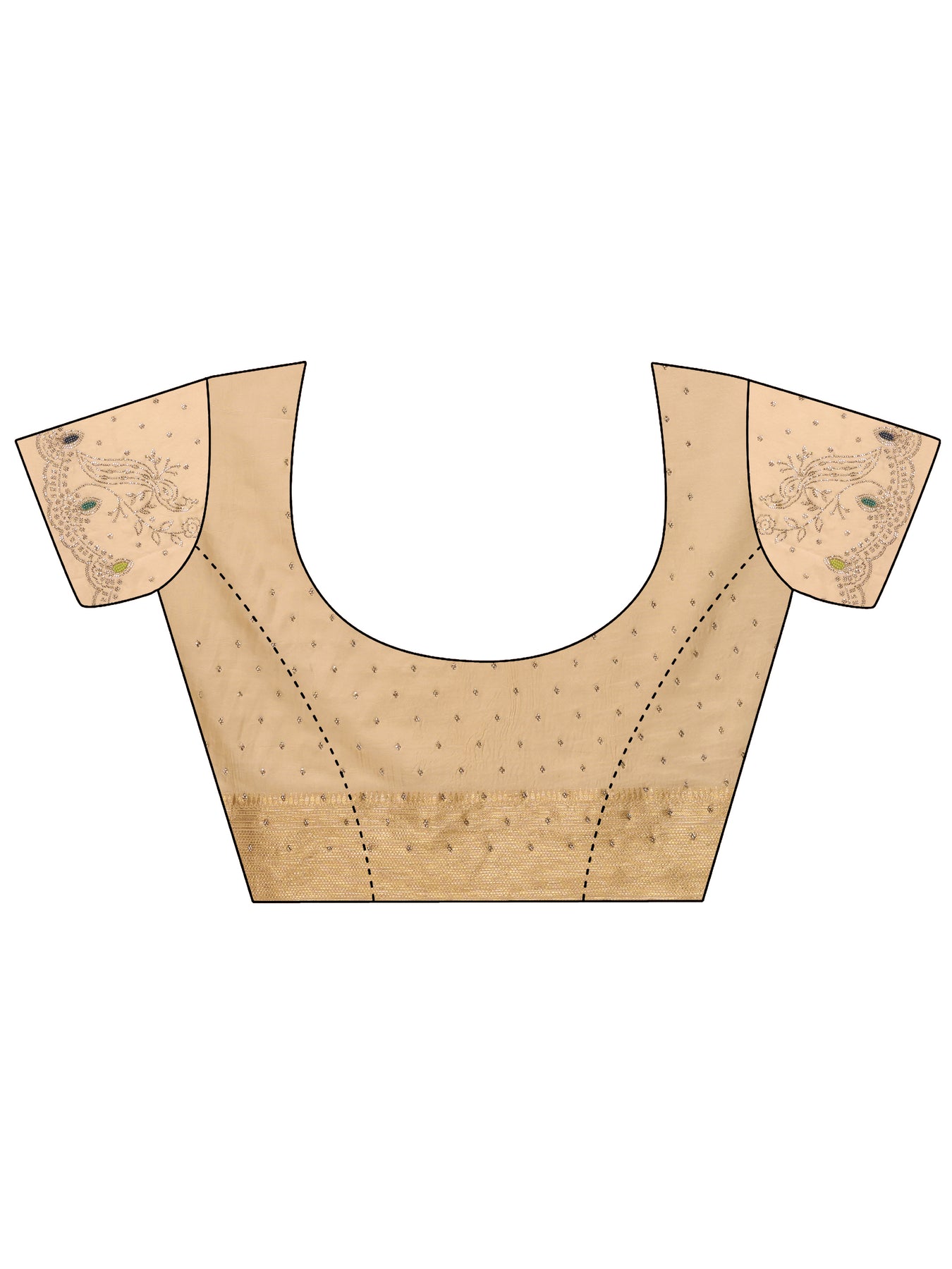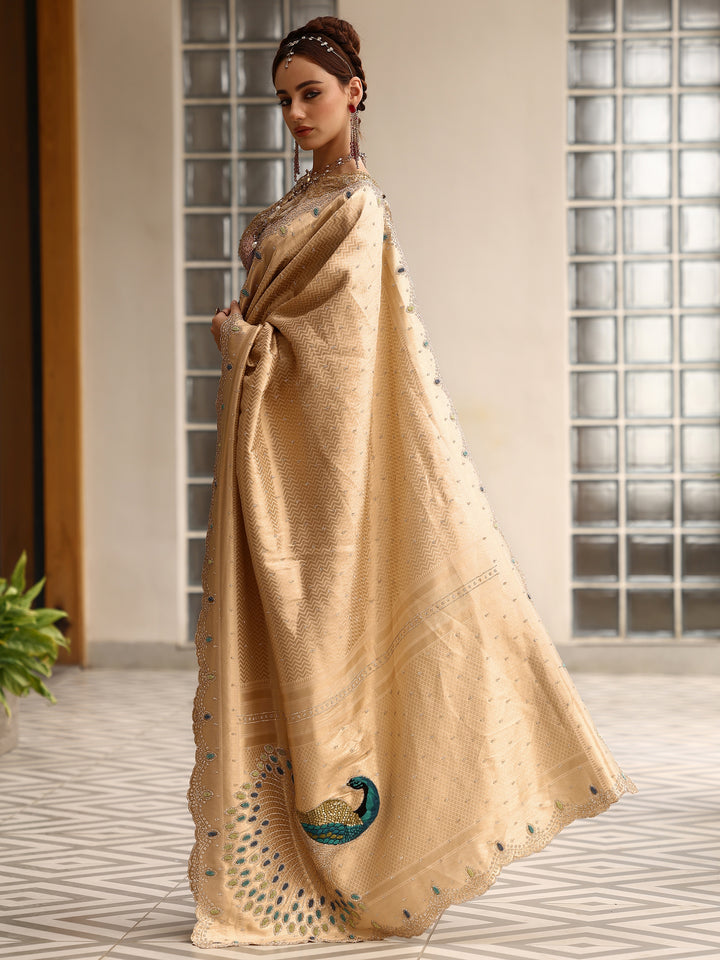 Our Gold Embellished Silk Blend Saree. Complemented With An Unstitched Blouse Piece. This Charming Saree Is Perfect For Festive Occasions.