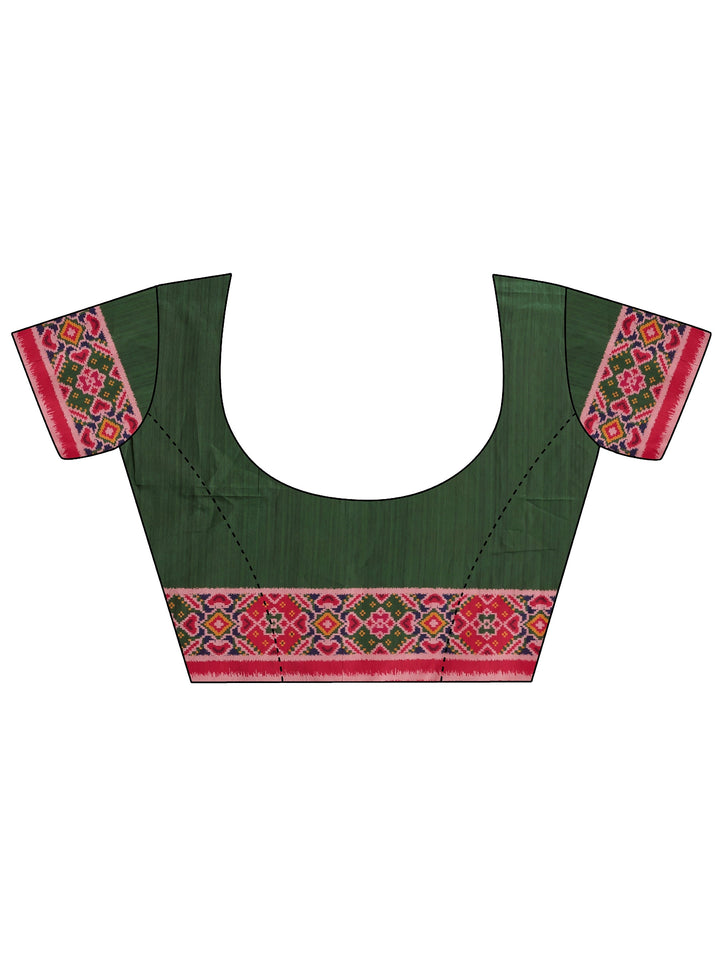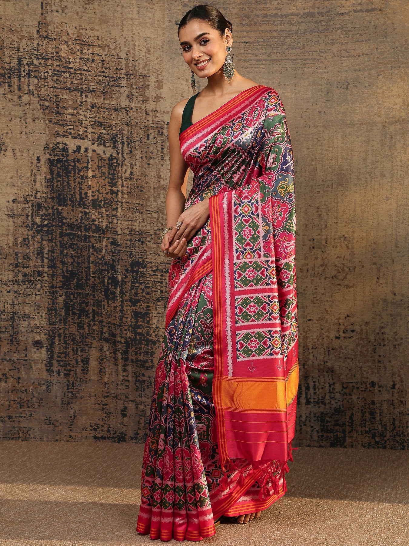 Multi Ikat Printed Silk Saree With Unstitched Blouse Piece
