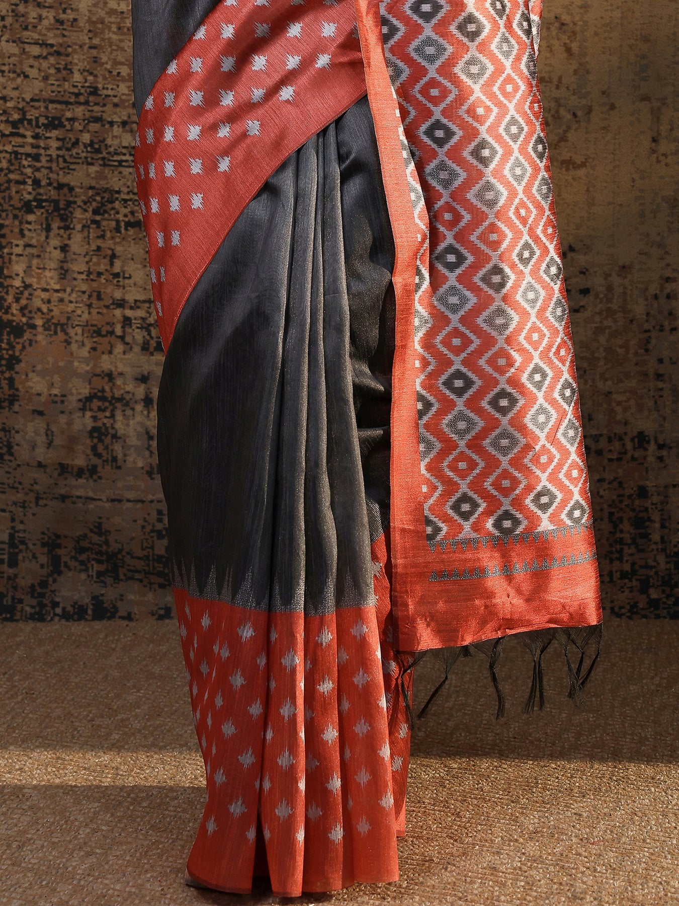 Red Ikat Solid Silk Saree With Unstitched Blouse Piece