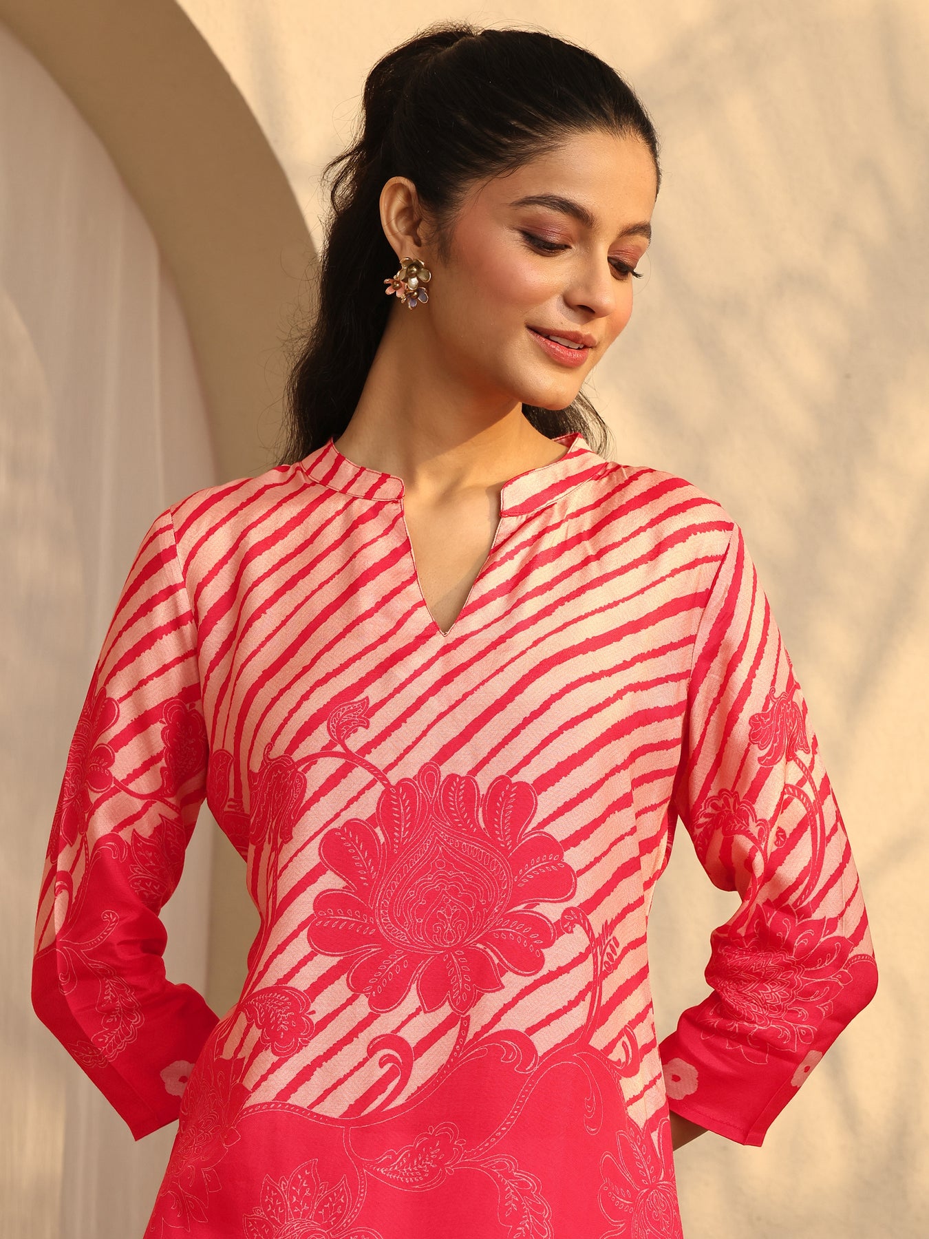 Our 1-piece Red Muslin Straight-fit kurta features a mandarin collar, Regular Sleeves, and statement Yoke. Adorned with floral Print, this style is perfect for Work Wear and Casual Wear.