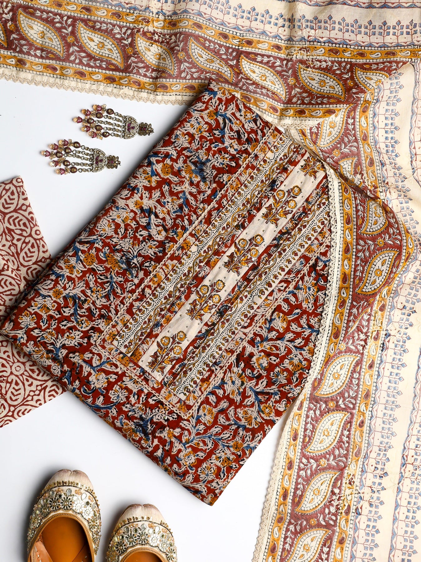 Multi Floral Printed Cotton Dress Material With Dupatta