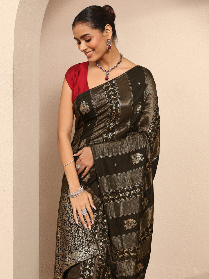 Black Woven Design Silk Blend Banarasi Saree With Unstitched Blouse Piece