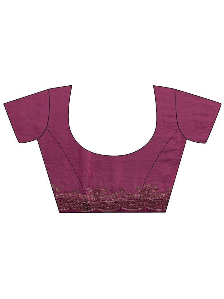 Our magenta silk blend saree features captivating embellishments. Complemented with an unstitched blouse piece. This charming saree is perfect for festive occasions.