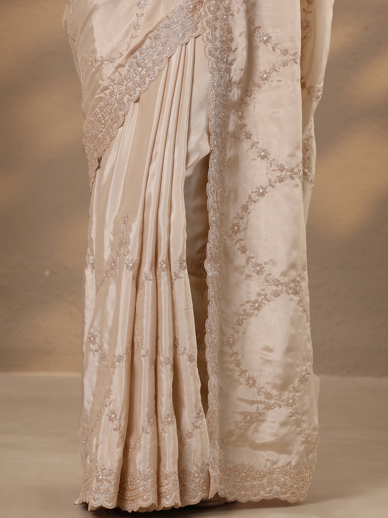 Our Cream Embroidered Silk Blend Saree Features Captivating Floral. Complemented With An Unstitched Blouse Piece. This Charming Saree Is Perfect For Festive Occasions.