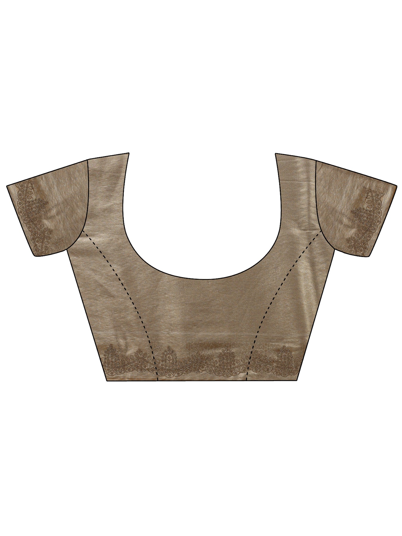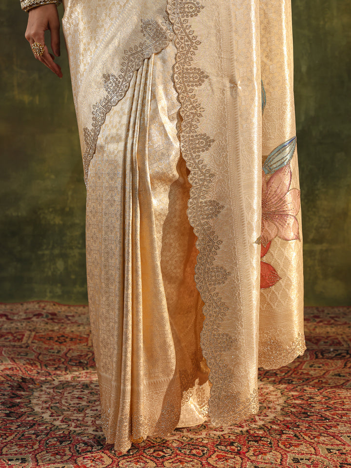 Gold Floral Embellished Silk Saree With Unstitched Blouse Piece