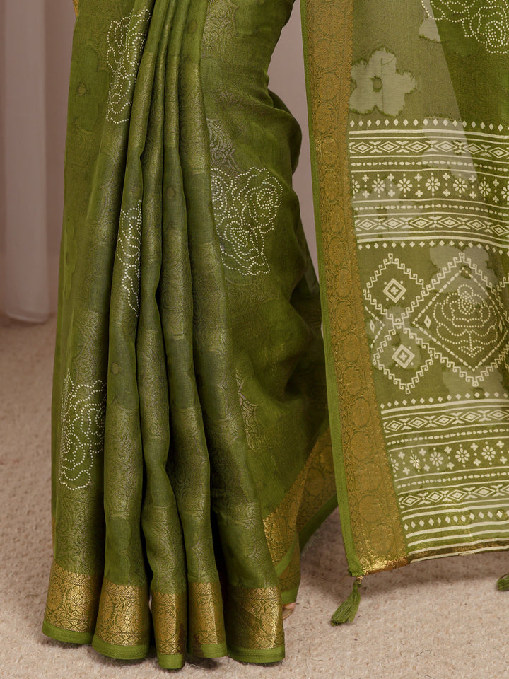 Green Floral Woven Design Jacquard Silk Blend Saree With Unstitched Blouse Piece