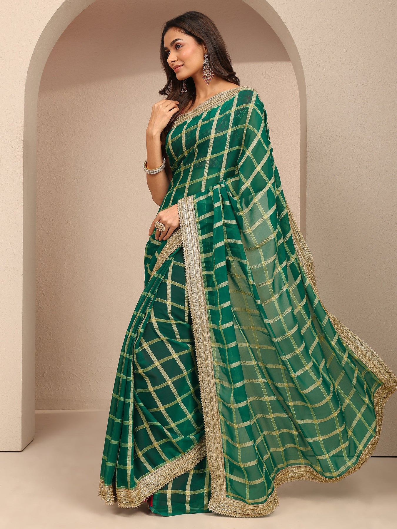 Green Geometric Woven Design Silk Blend Saree With Unstitched Blouse Piece