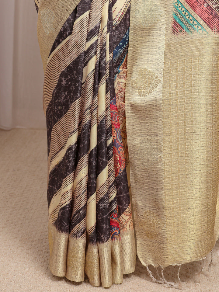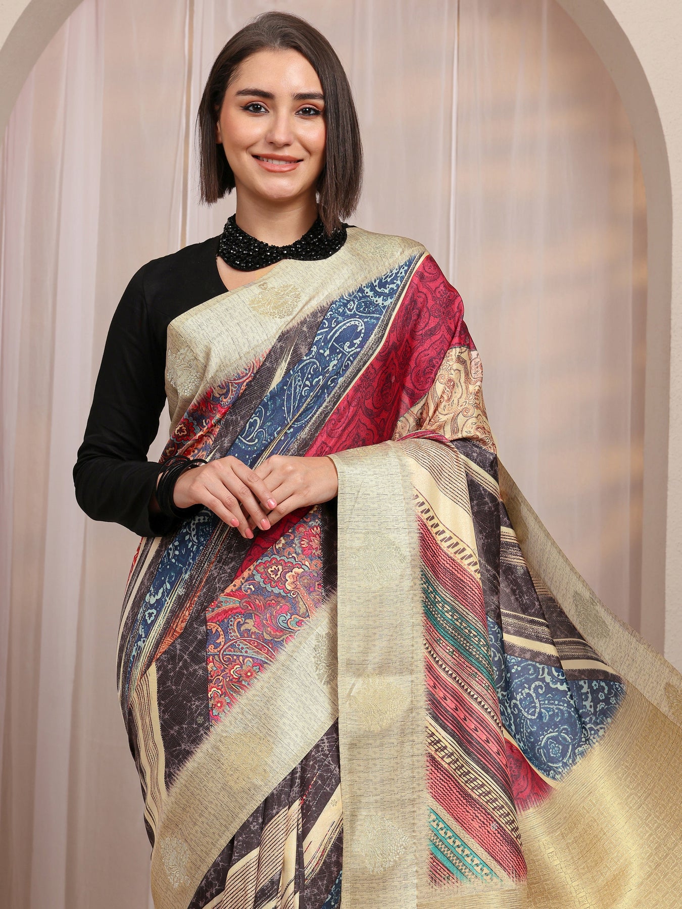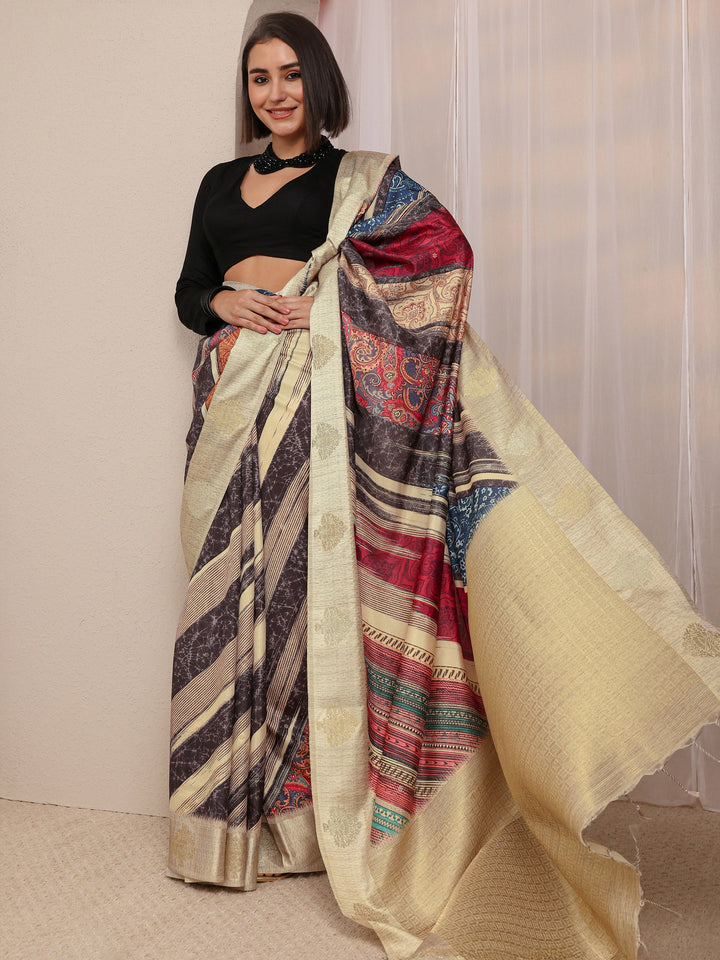 Multi Ethnic Motifs Printed Silk Blend Saree