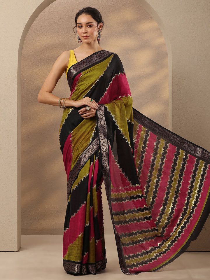 Multi Woven Design Silk Blend Saree With Unstitched Blouse Piece