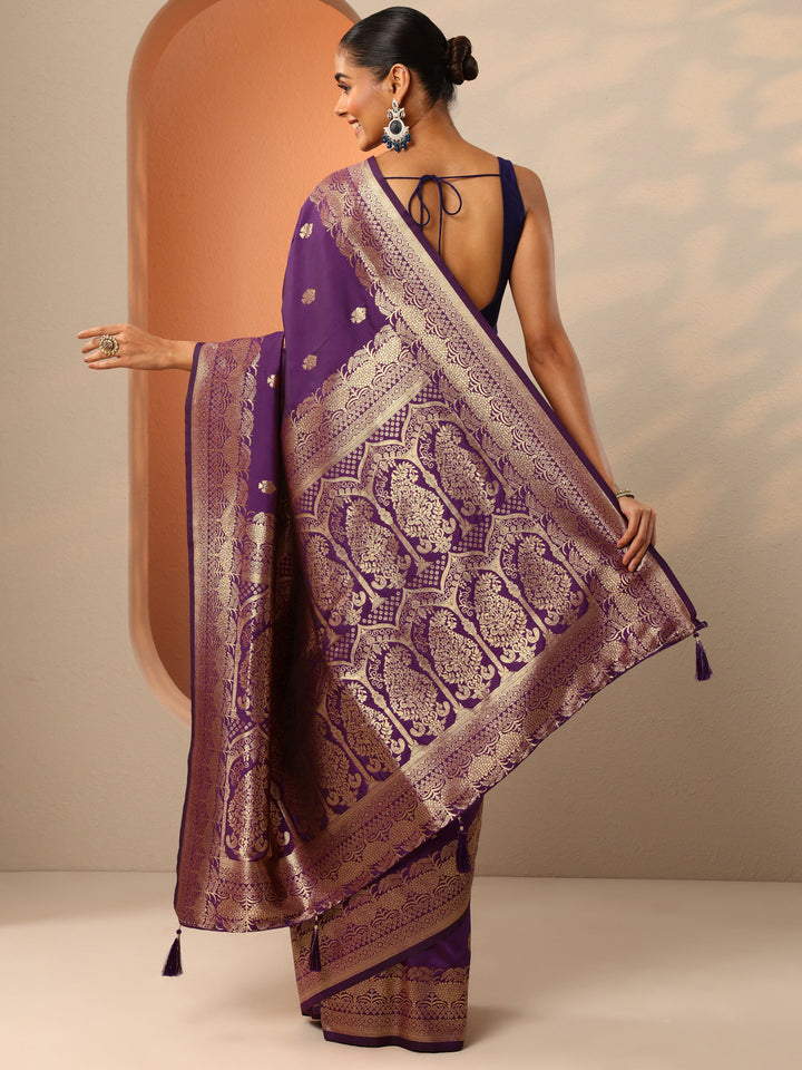Purple Woven Design Banarasi Silk Blend Saree With Unstitched Blouse P