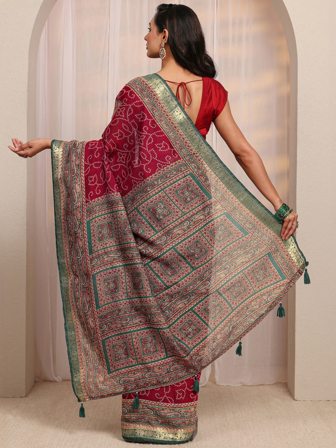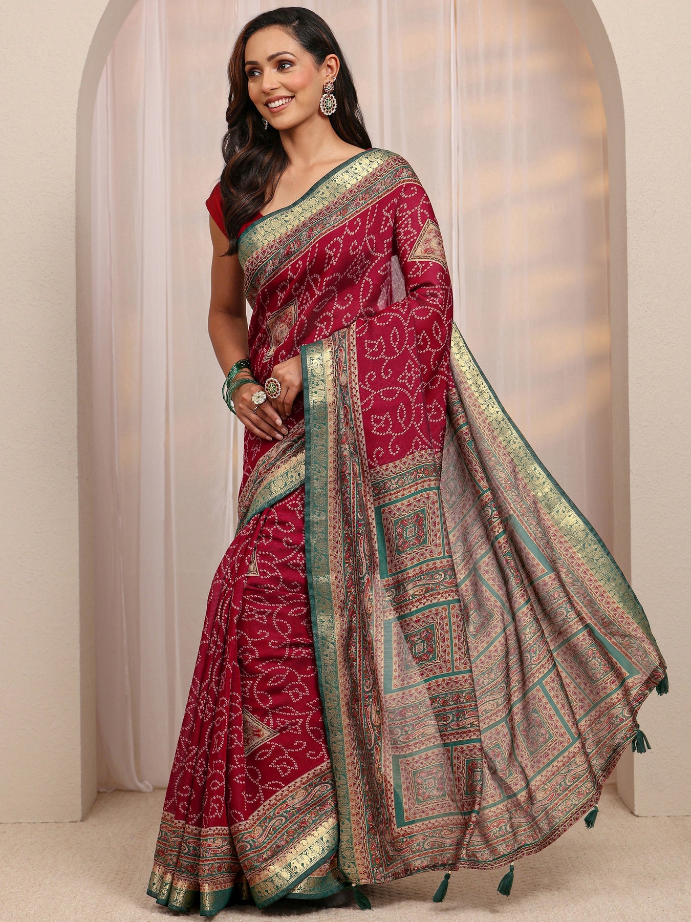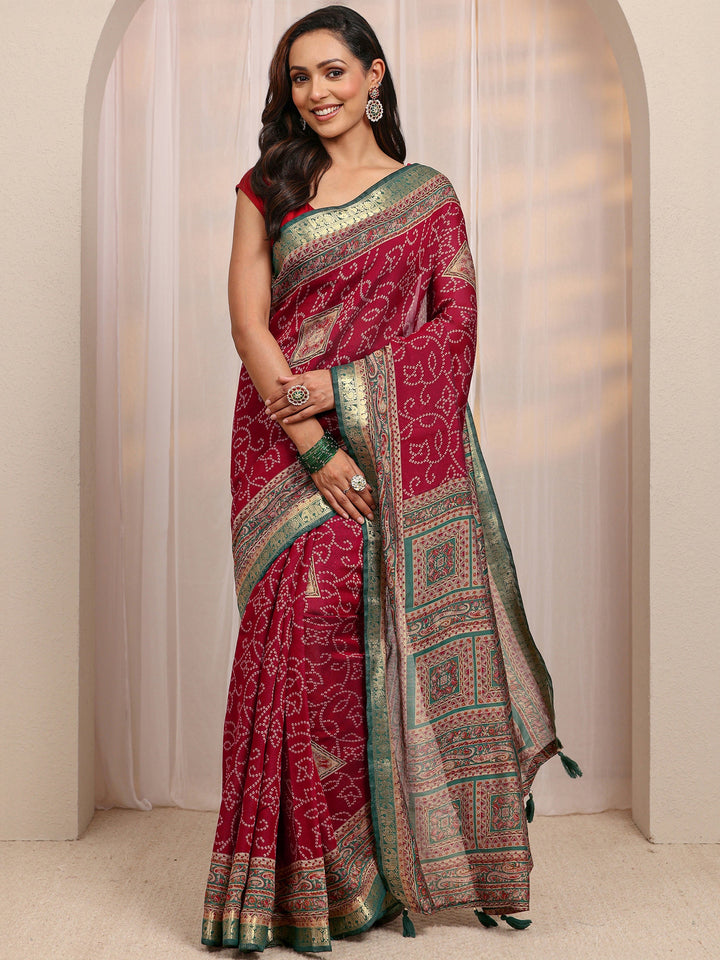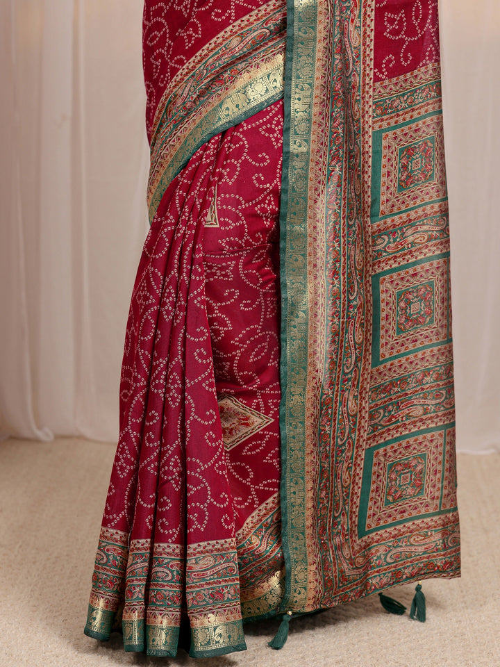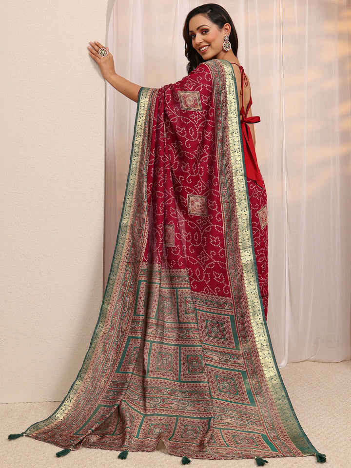 Red Bandhani Printed Silk Blend Saree