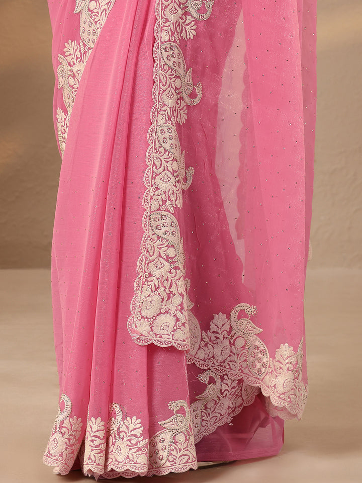 Pink Embellished Silk Blend Saree With Unstitched Blouse Piece