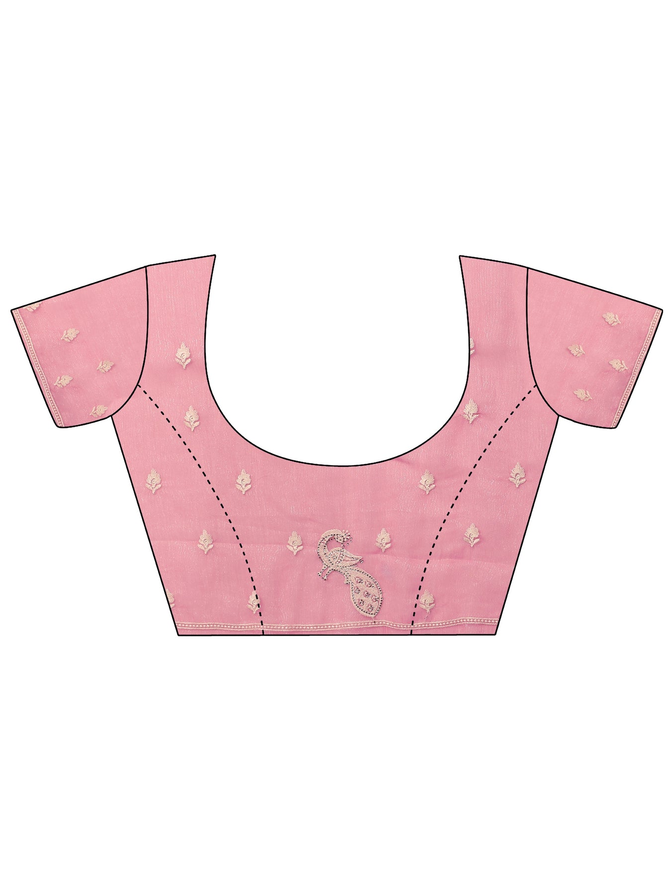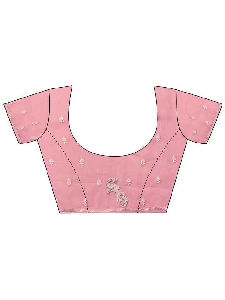Our Pink Embroidered Silk Blend Saree Features Captivating Embellished. Complemented With An Unstitched Blouse Piece. This Charming Saree Is Perfect For Festive Occasions.
