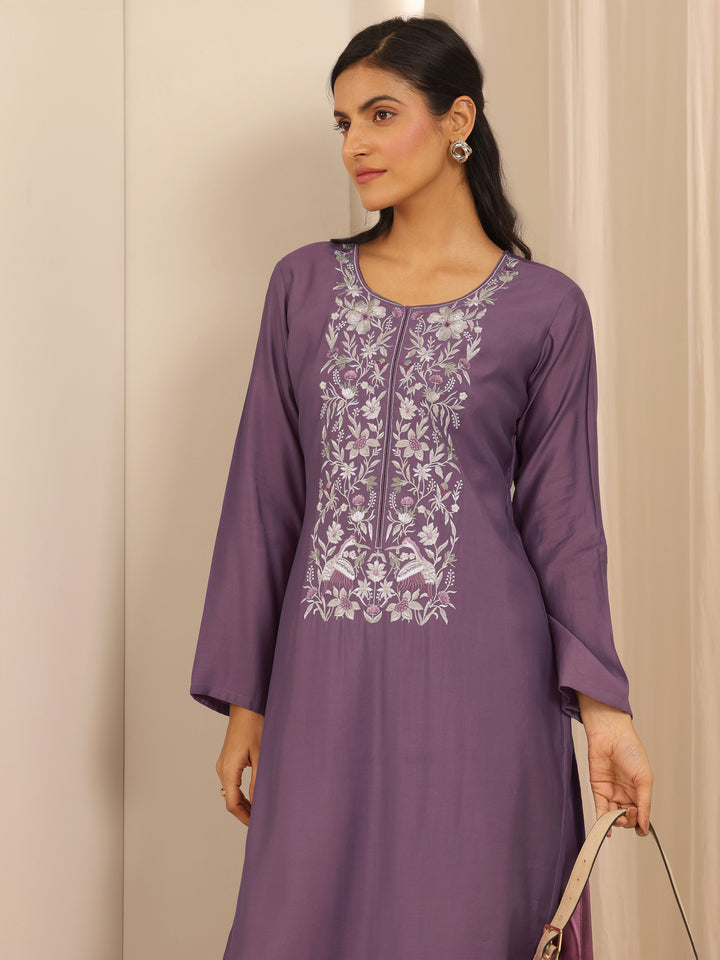 Mauve Embroidered Silk Blend Straight Kurta Set