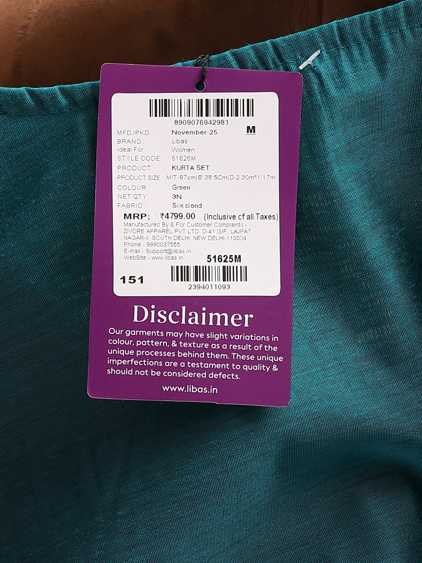Green Embroidered Silk Blend Straight Suit Set With Dupatta