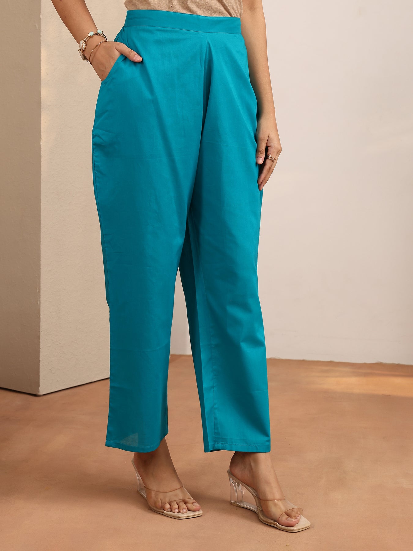 Our 3-piece teal silk blend straight-fit kurta set features a V-neckline, regular sleeves, and statement yoke. Complemented with straight pants with a partially elasticated waistband and 2 pockets, and an embroidered dupatta. Adorned with floral embroidered this style is perfect for festive occasions.