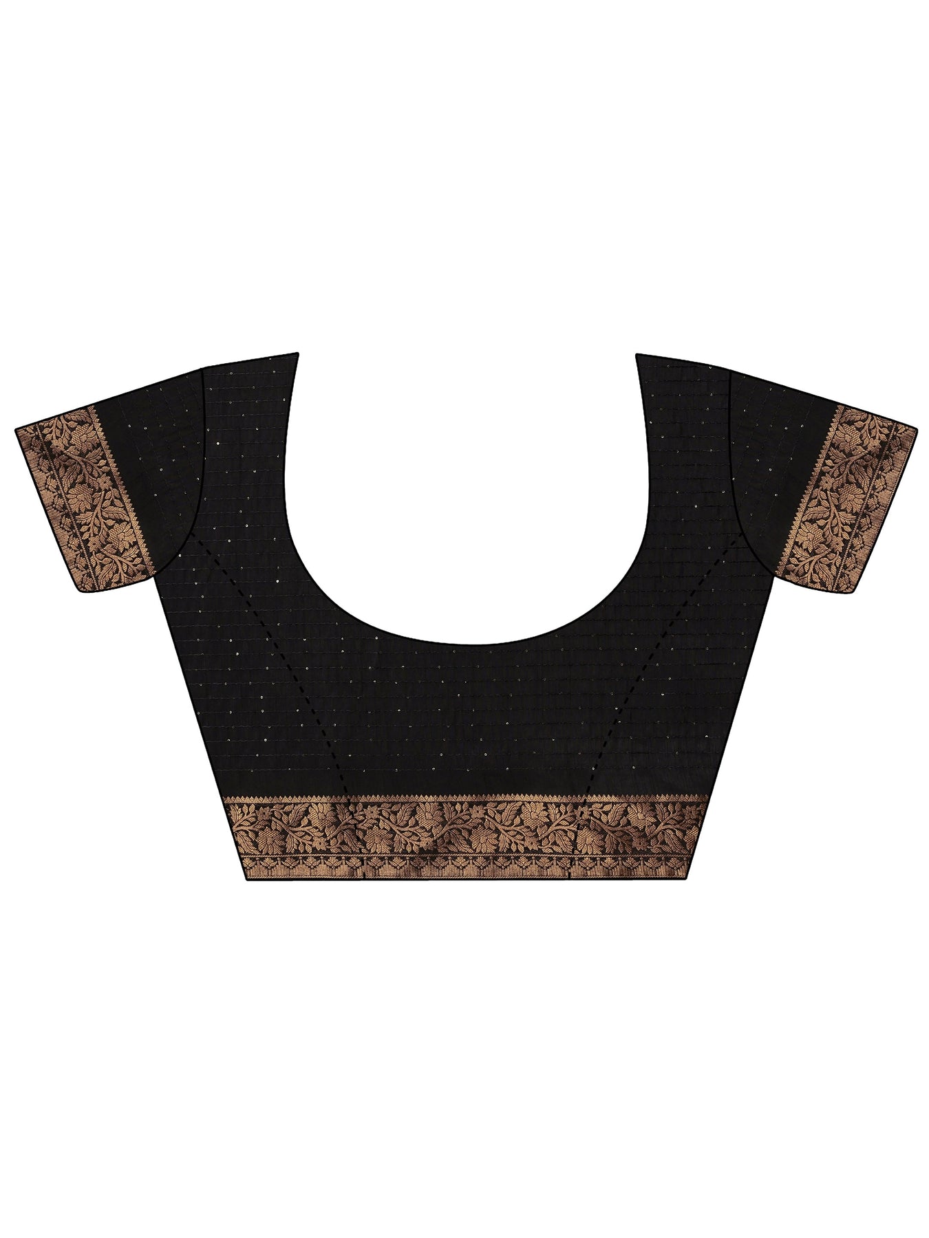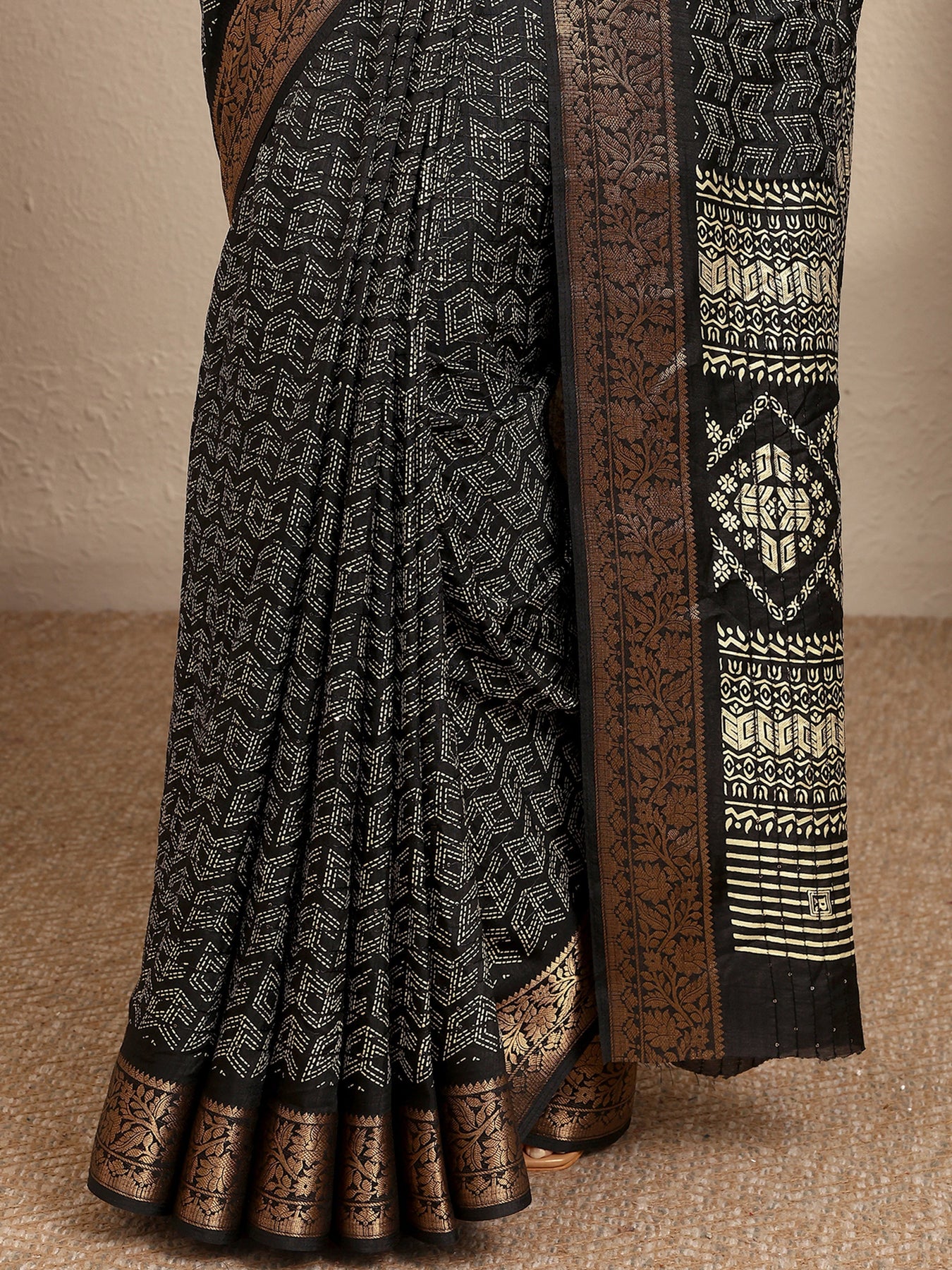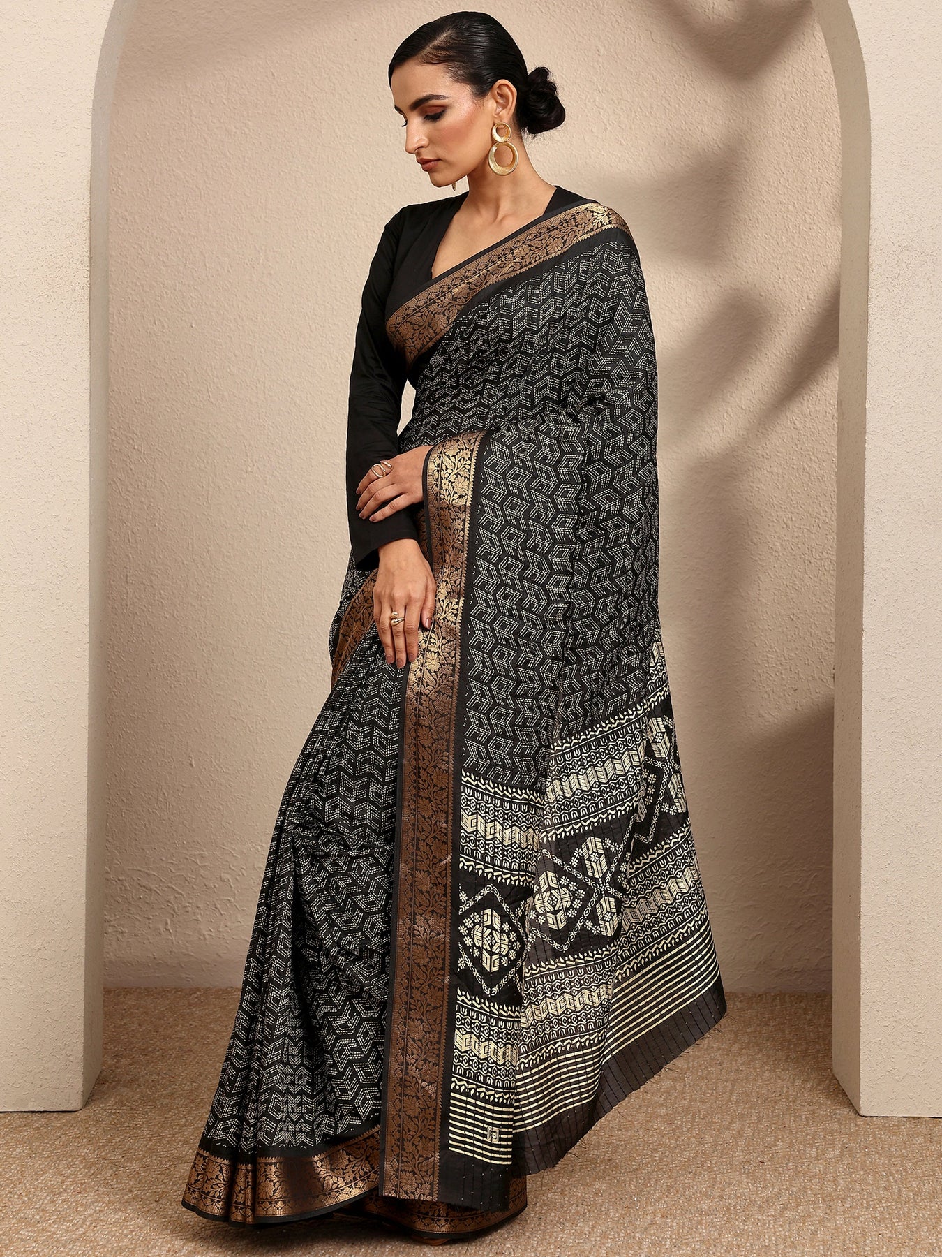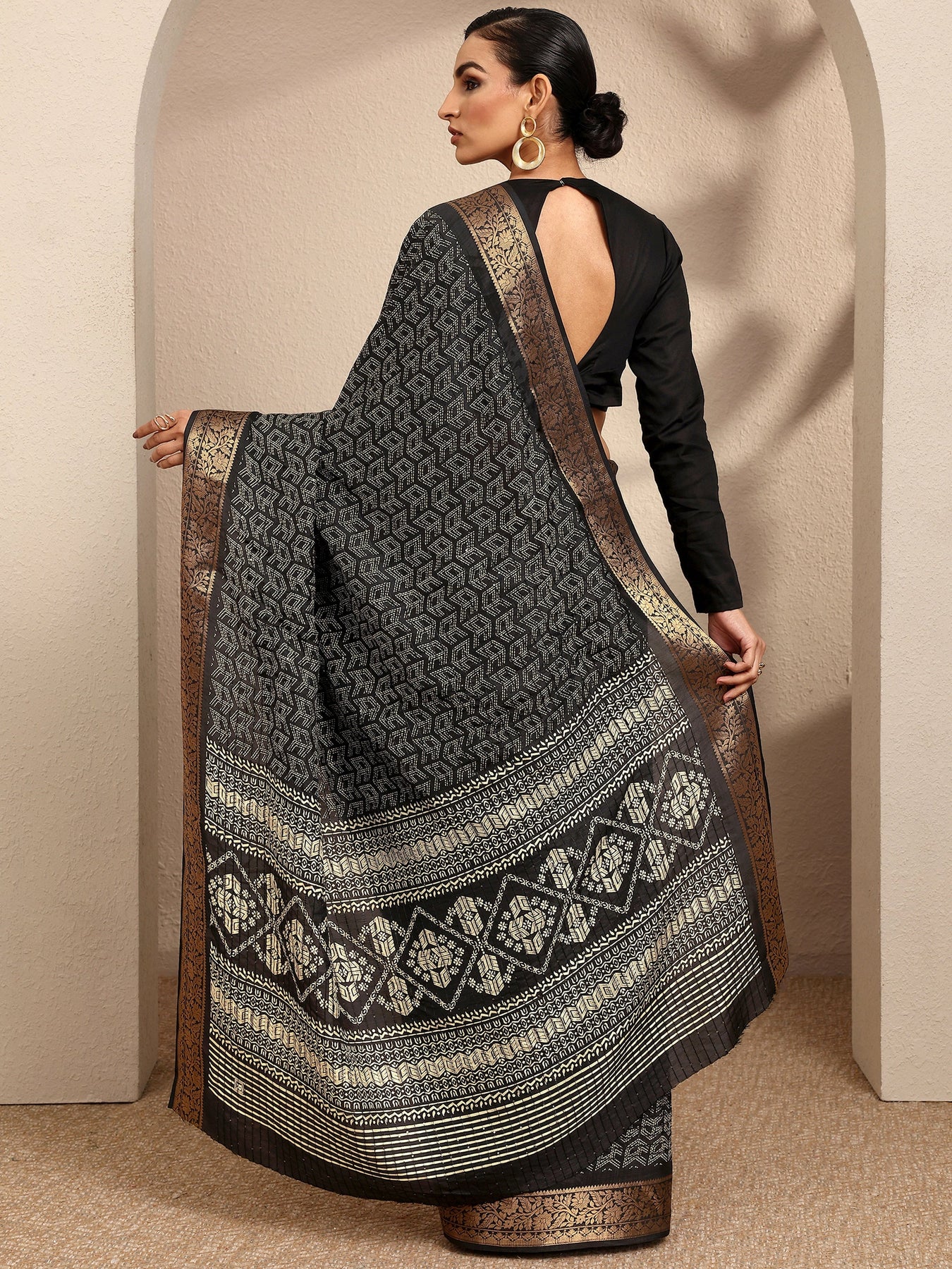Black Geometric Printed Silk Blend Saree With Unstitched Blouse Piece