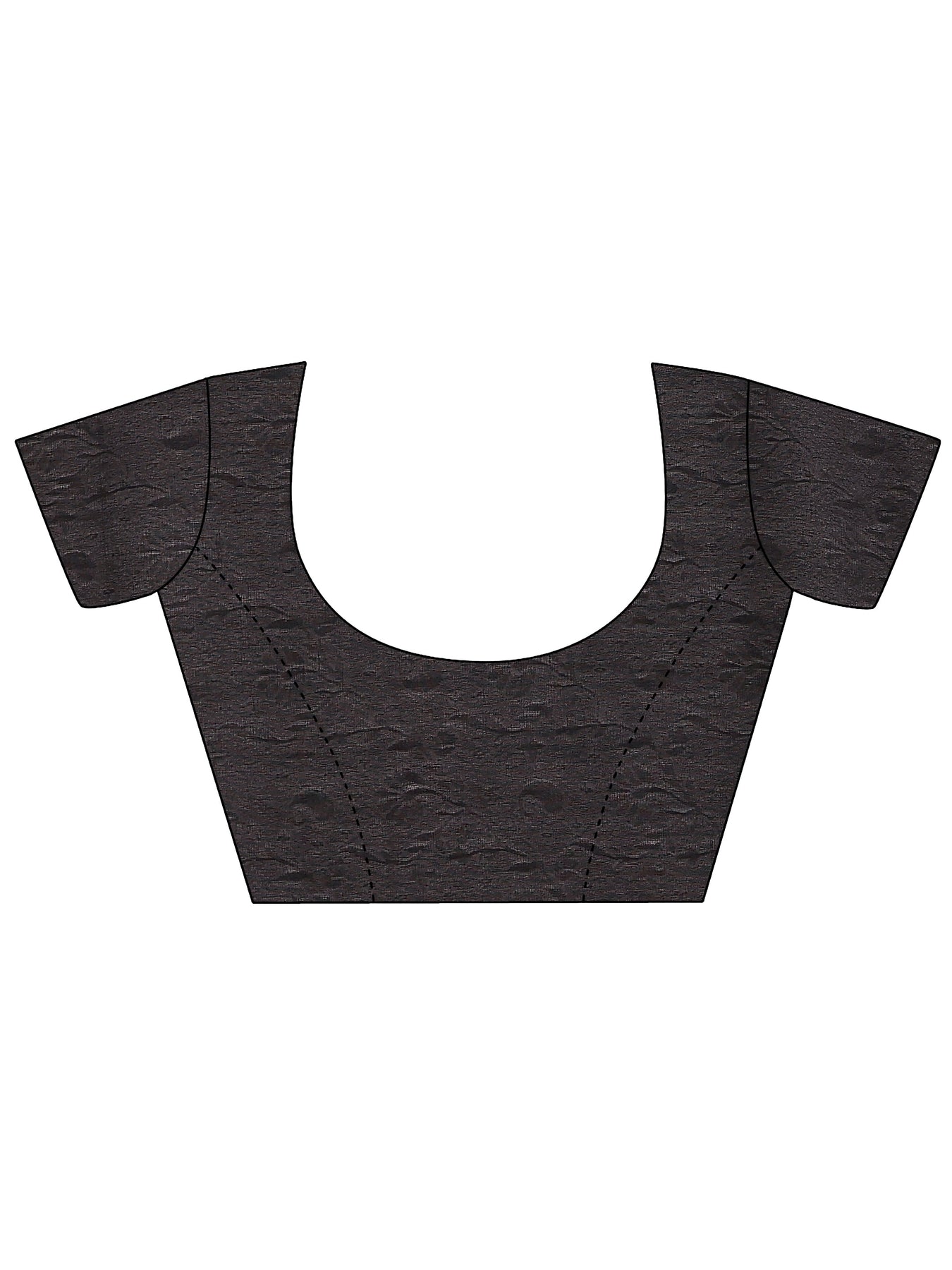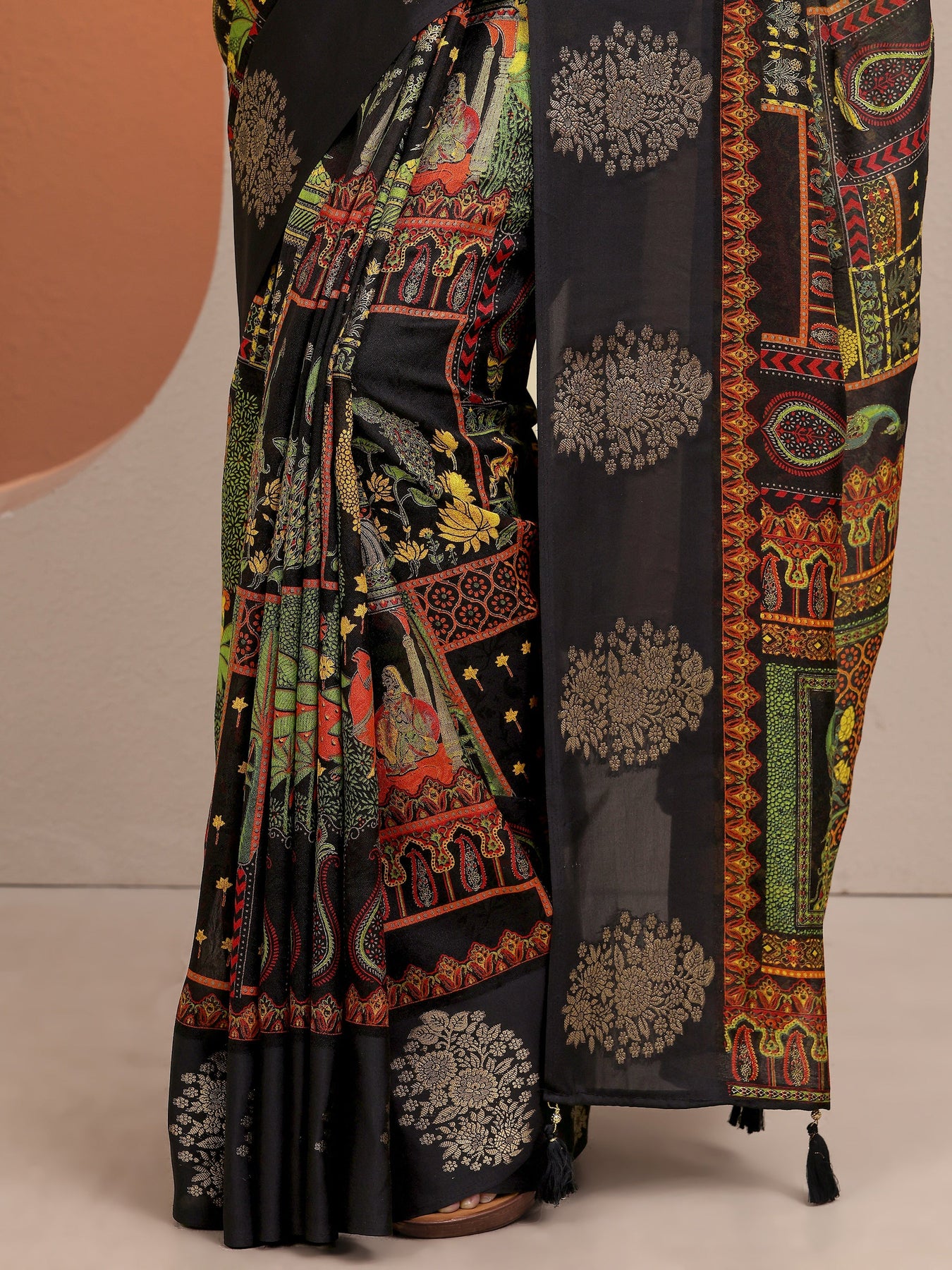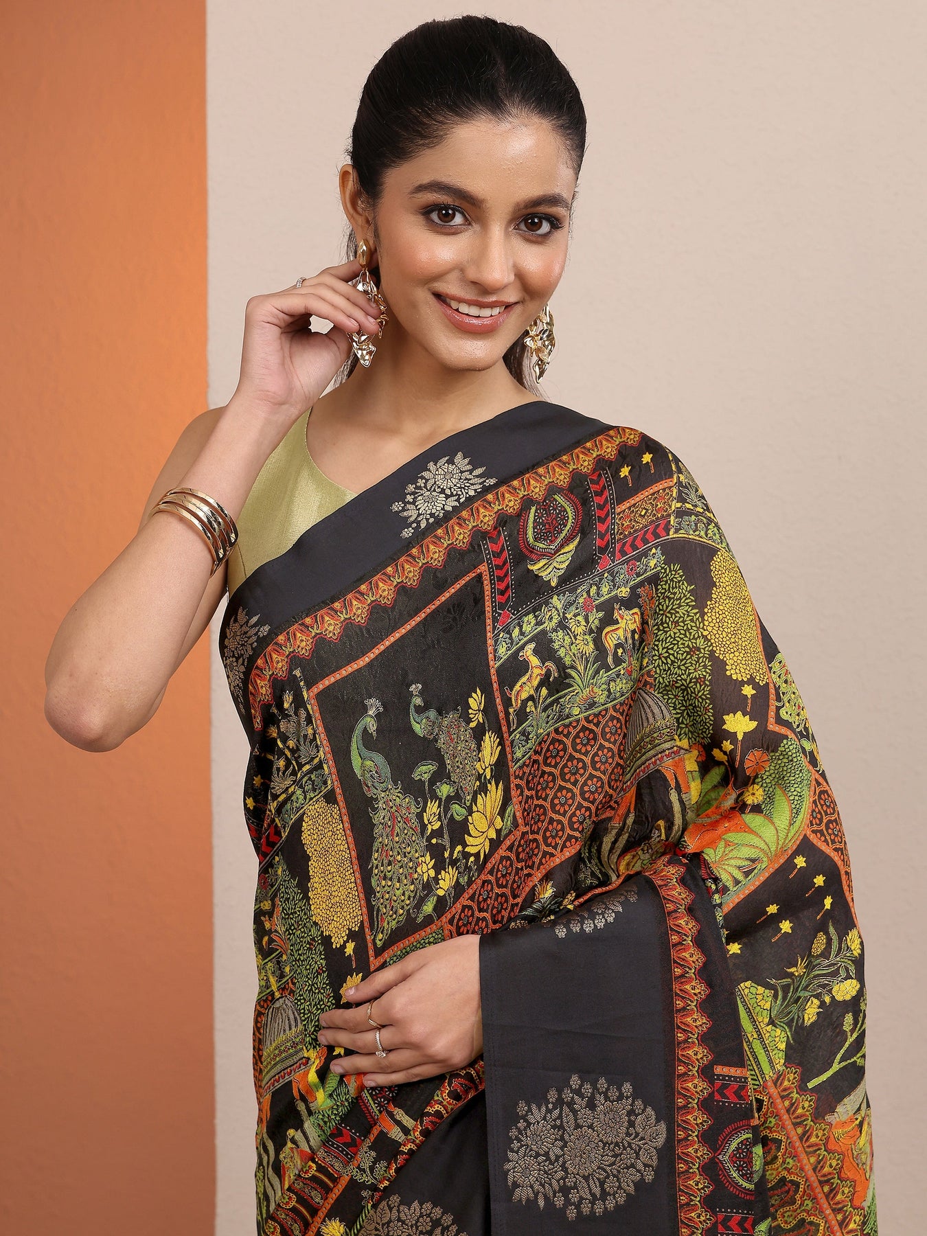 Black Printed Silk Blend Saree With Unstitched Blouse Piece