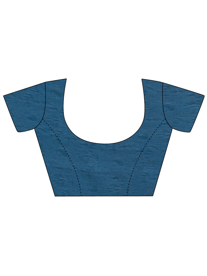 Blue Printed Silk Blend Saree With Unstitched Blouse Piece
