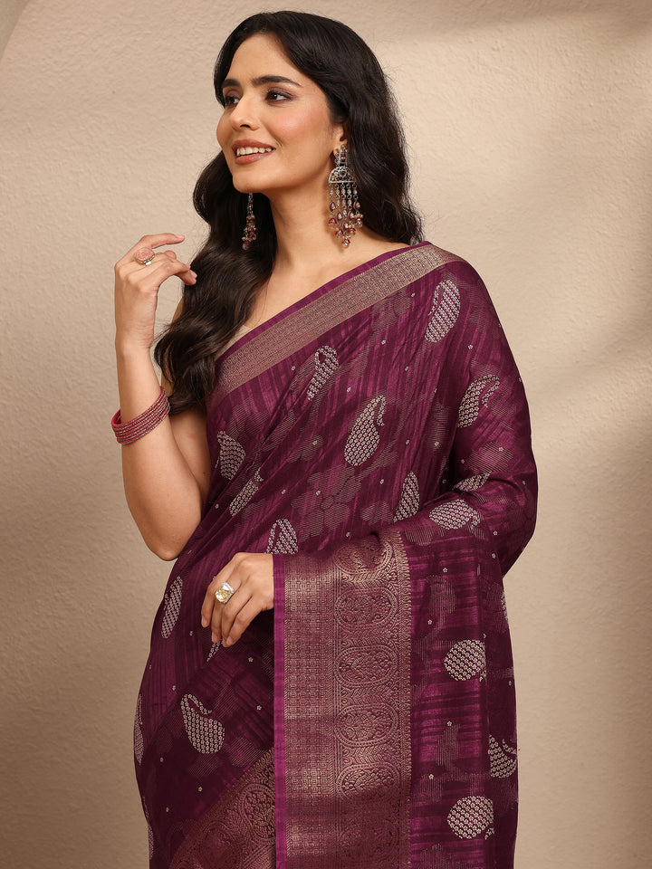 Burgundy Paisley Woven Design Silk Blend Saree With Unstitched Blouse