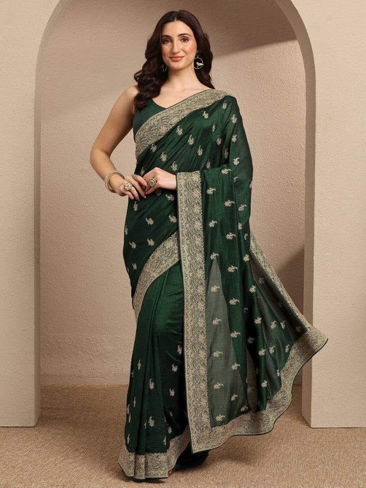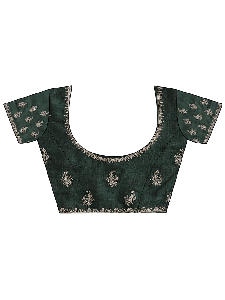 Green Embroidered Silk Blend Saree With Unstitched Blouse Piece
